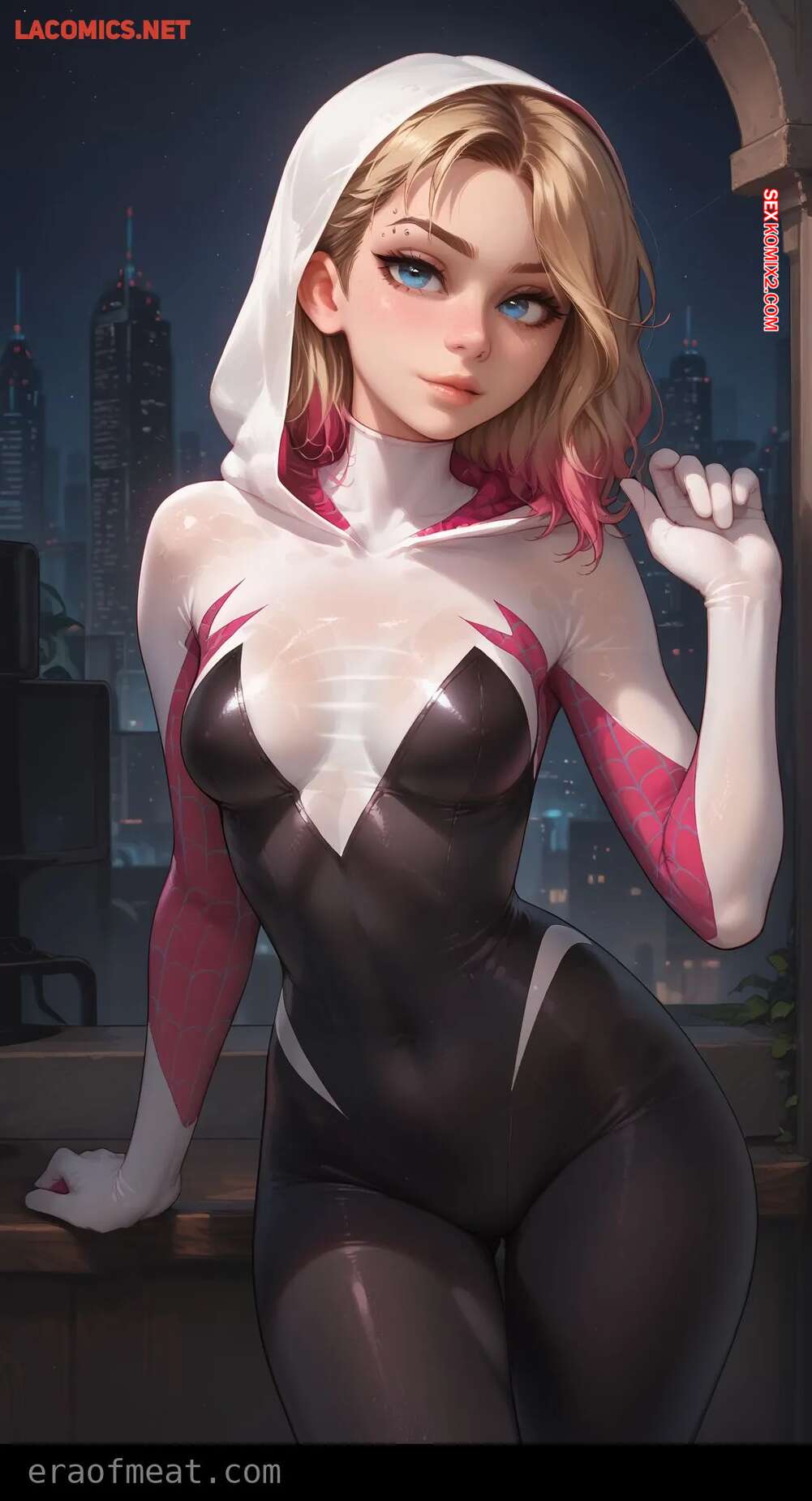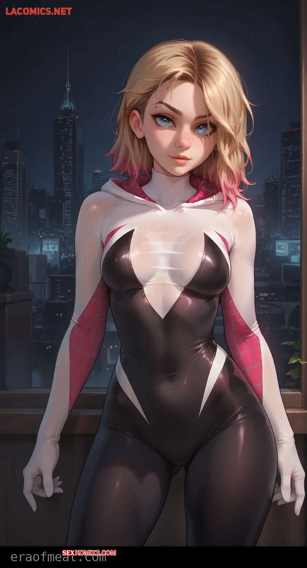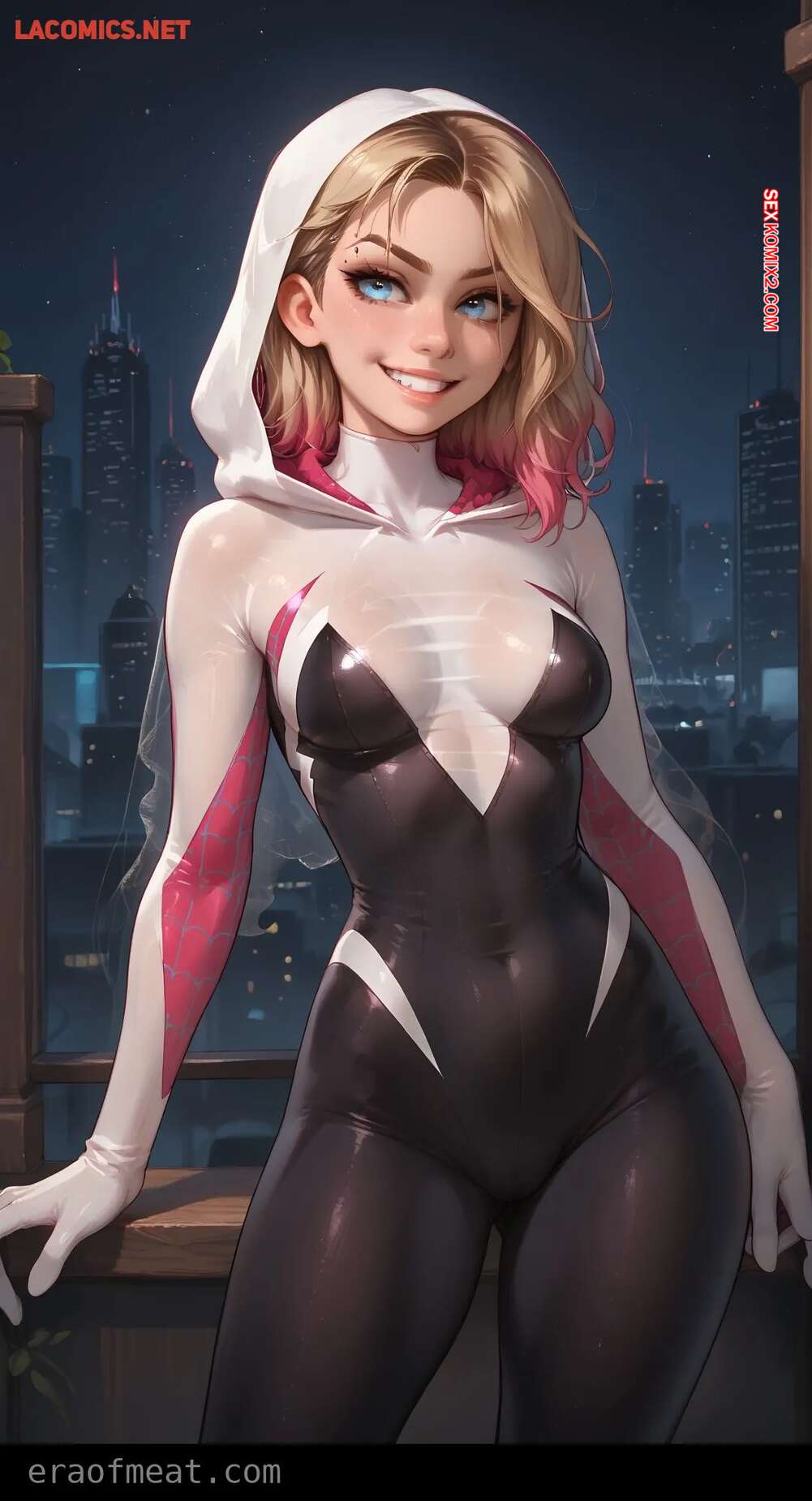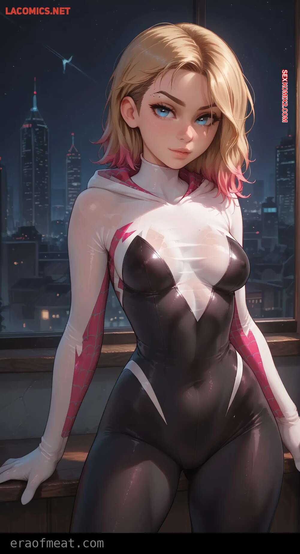 Порно комикс Gwen. Era of Meat Горячая блондинка Гвен очень возбуждена и хочет трахаться. Она встала на колени и отсосала большой хуй парня, после чего раздвинула ножки и дала ему себя выебать.