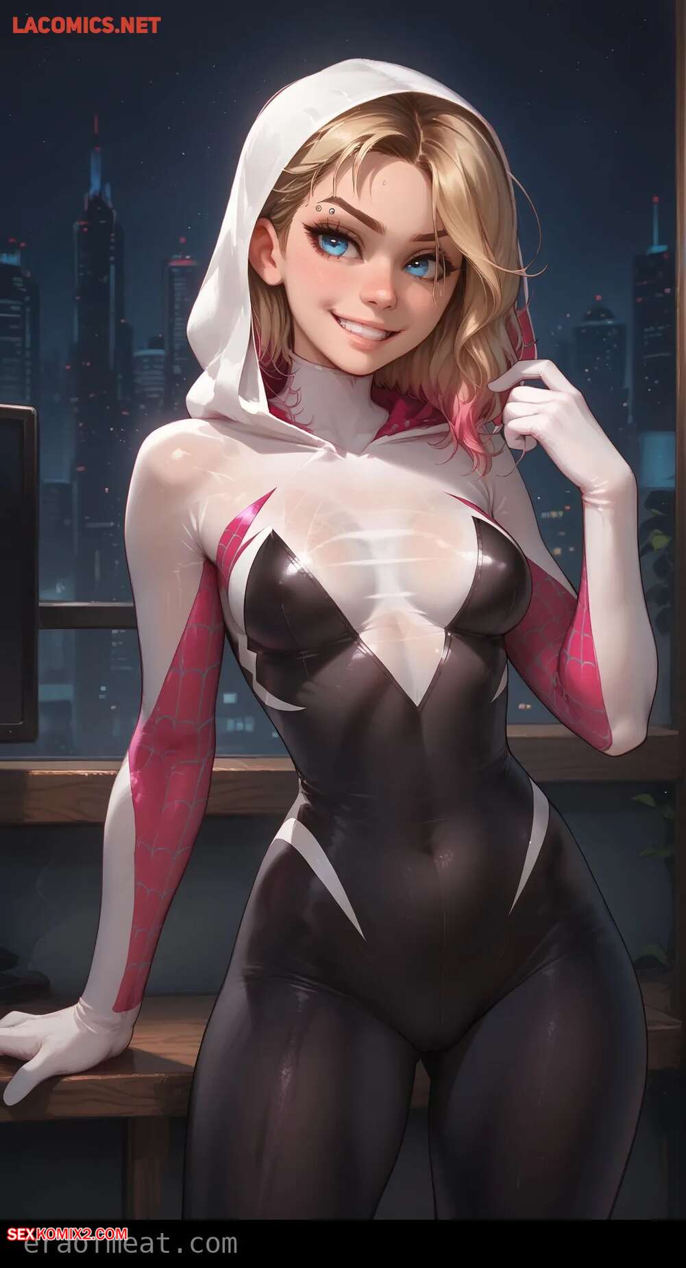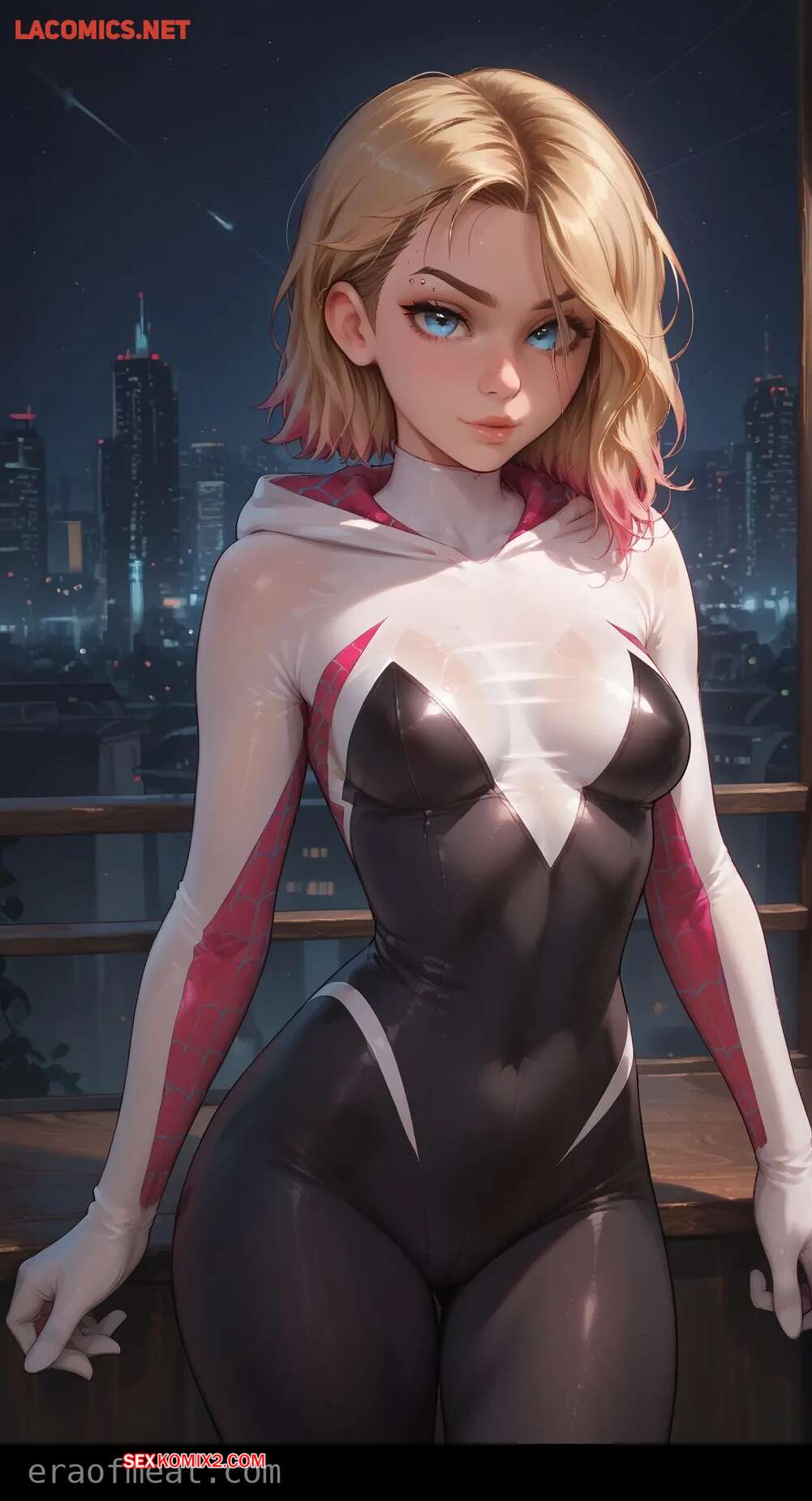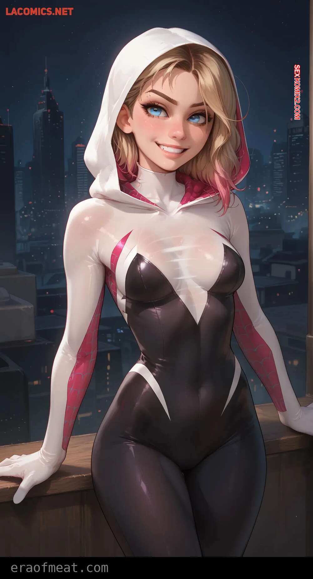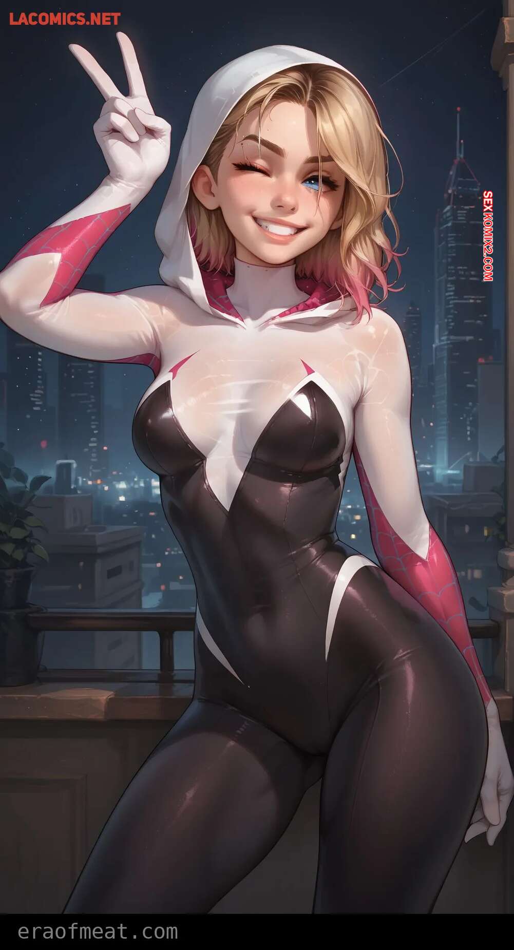 Порно комикс Gwen. Era of Meat Горячая блондинка Гвен очень возбуждена и хочет трахаться. Она встала на колени и отсосала большой хуй парня, после чего раздвинула ножки и дала ему себя выебать.