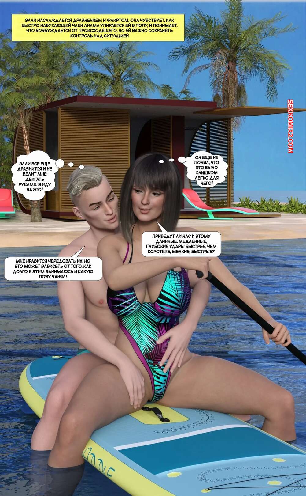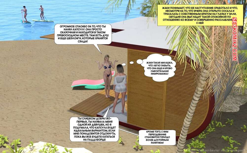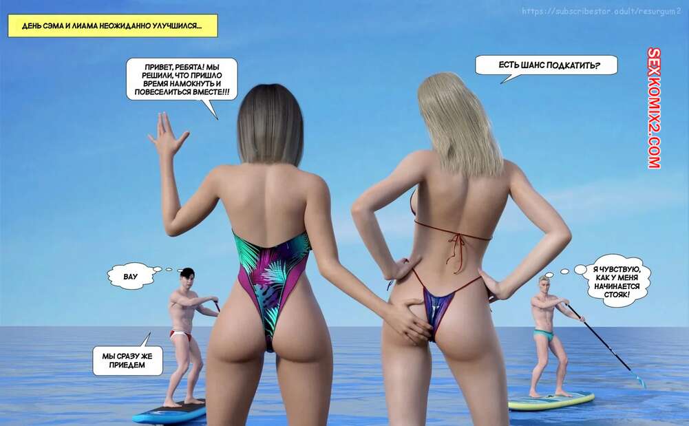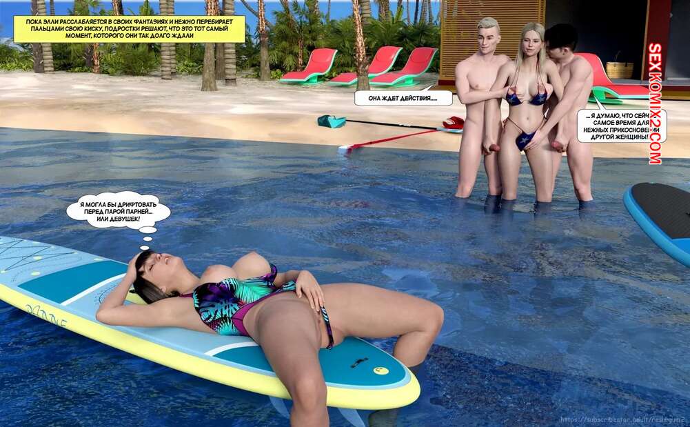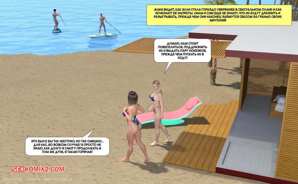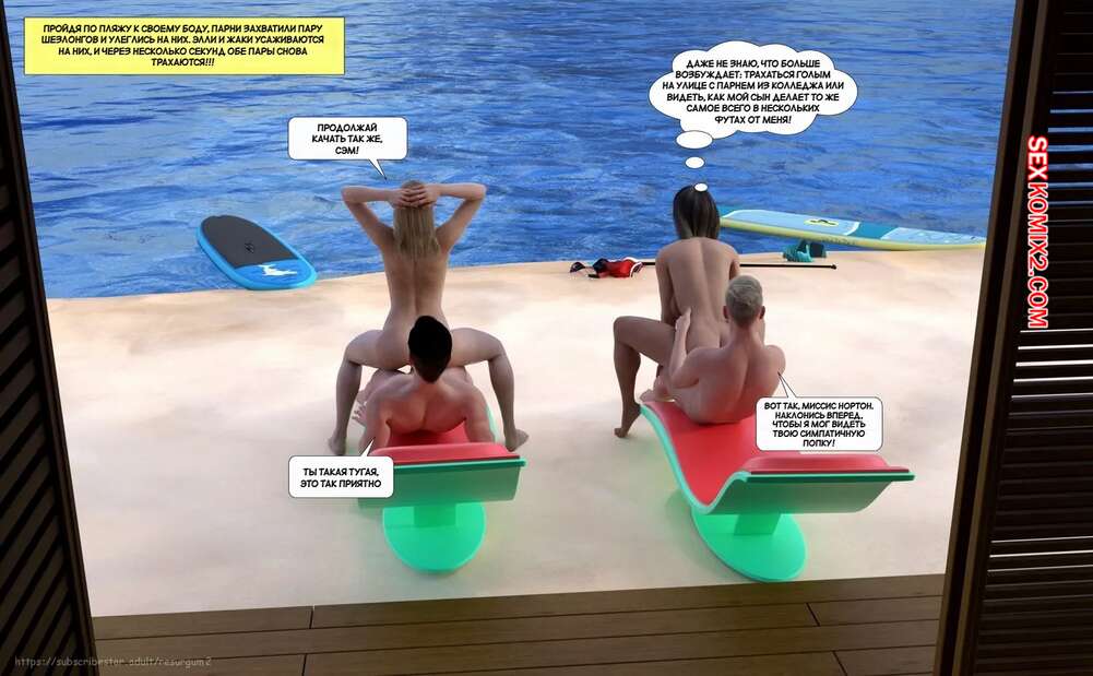 Порно комикс Путешествие Элли в разврат. Часть 3. Ellie A Journey into Depravity. Resurgum2 Парни отправились со своими горячими мамками на пляж и решили там повеселиться. Красотки разделись и стали сосать большие хуи парней, после чего дали им себя выебать.