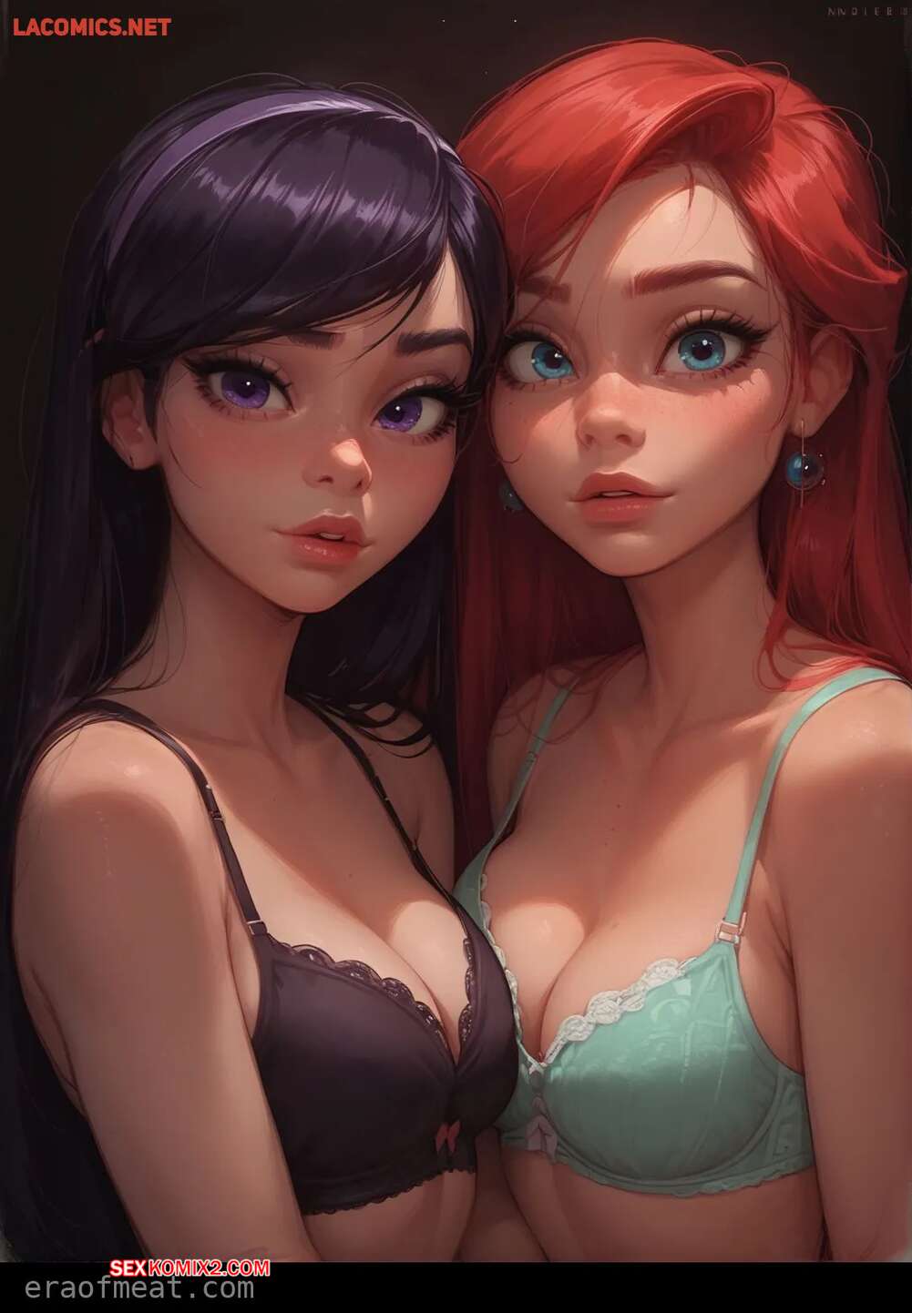 Порно комикс Violet and Ariel. Era of Meat Две горячие красотки были очень возбуждены и решили повеселиться со своим дружком. Они разделись и отсосали его большой хуй, после чего дали себя хорошенько выебать.