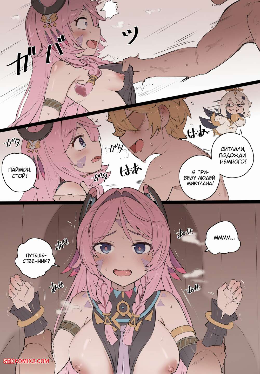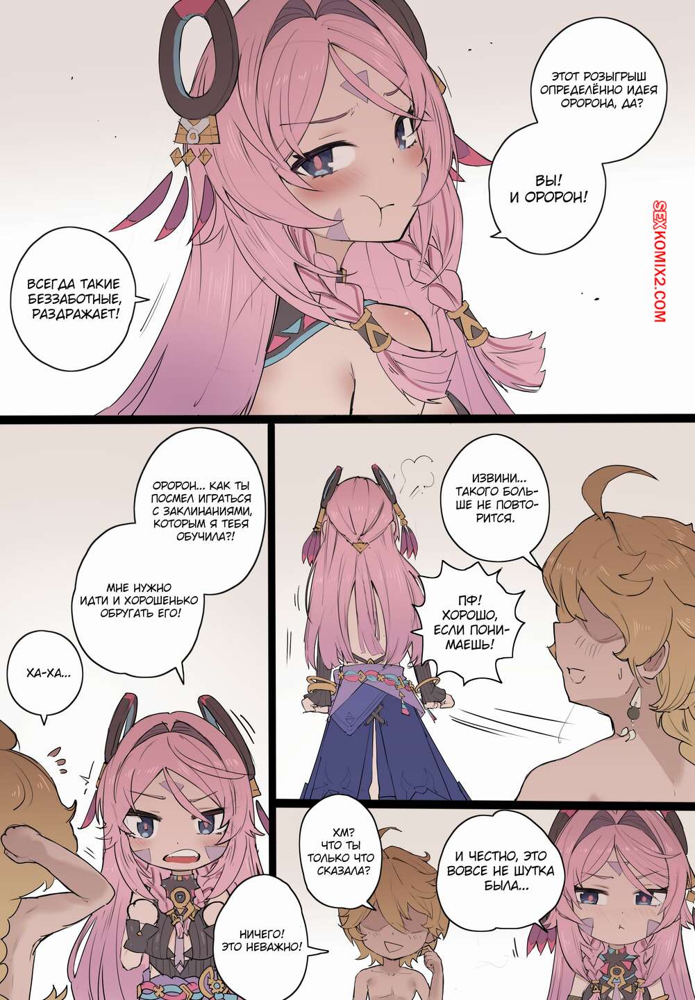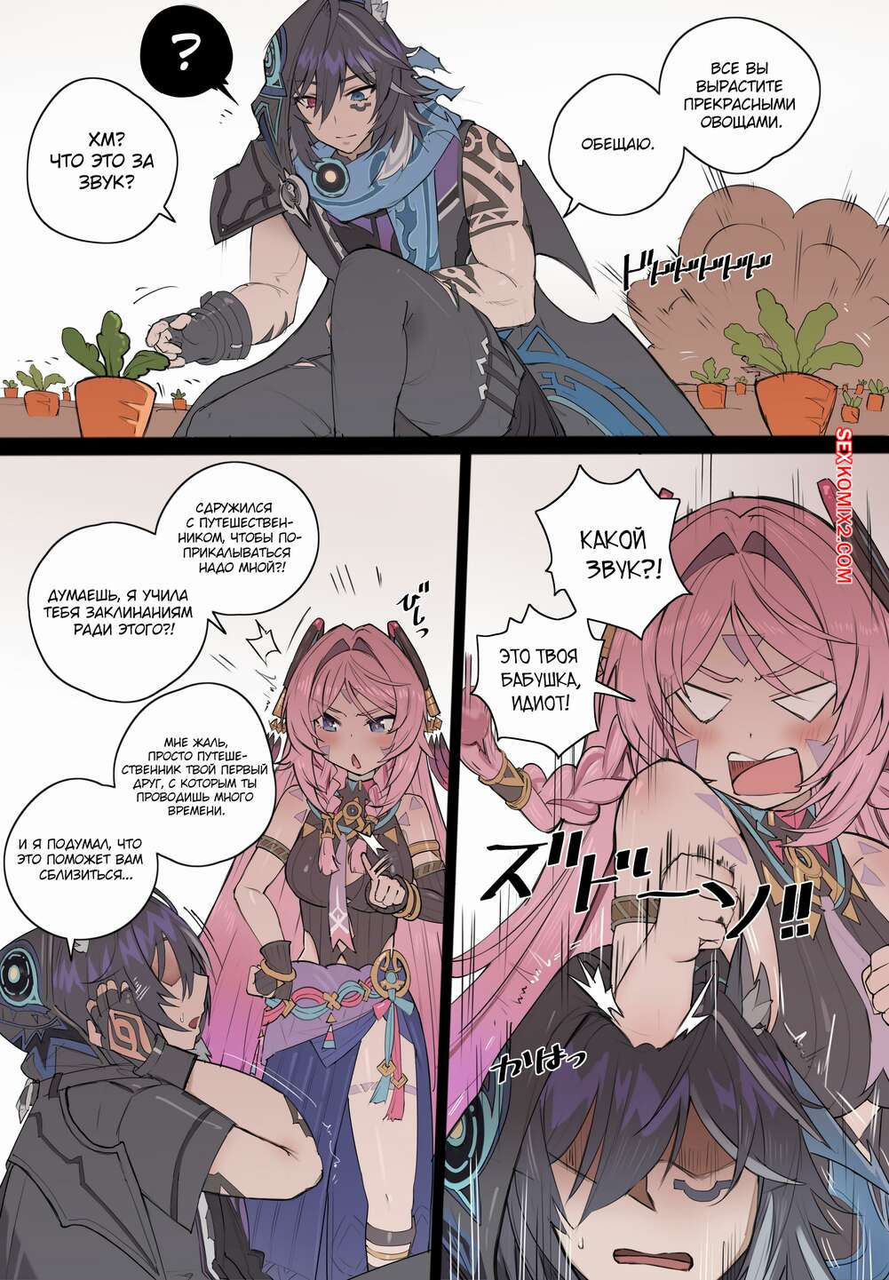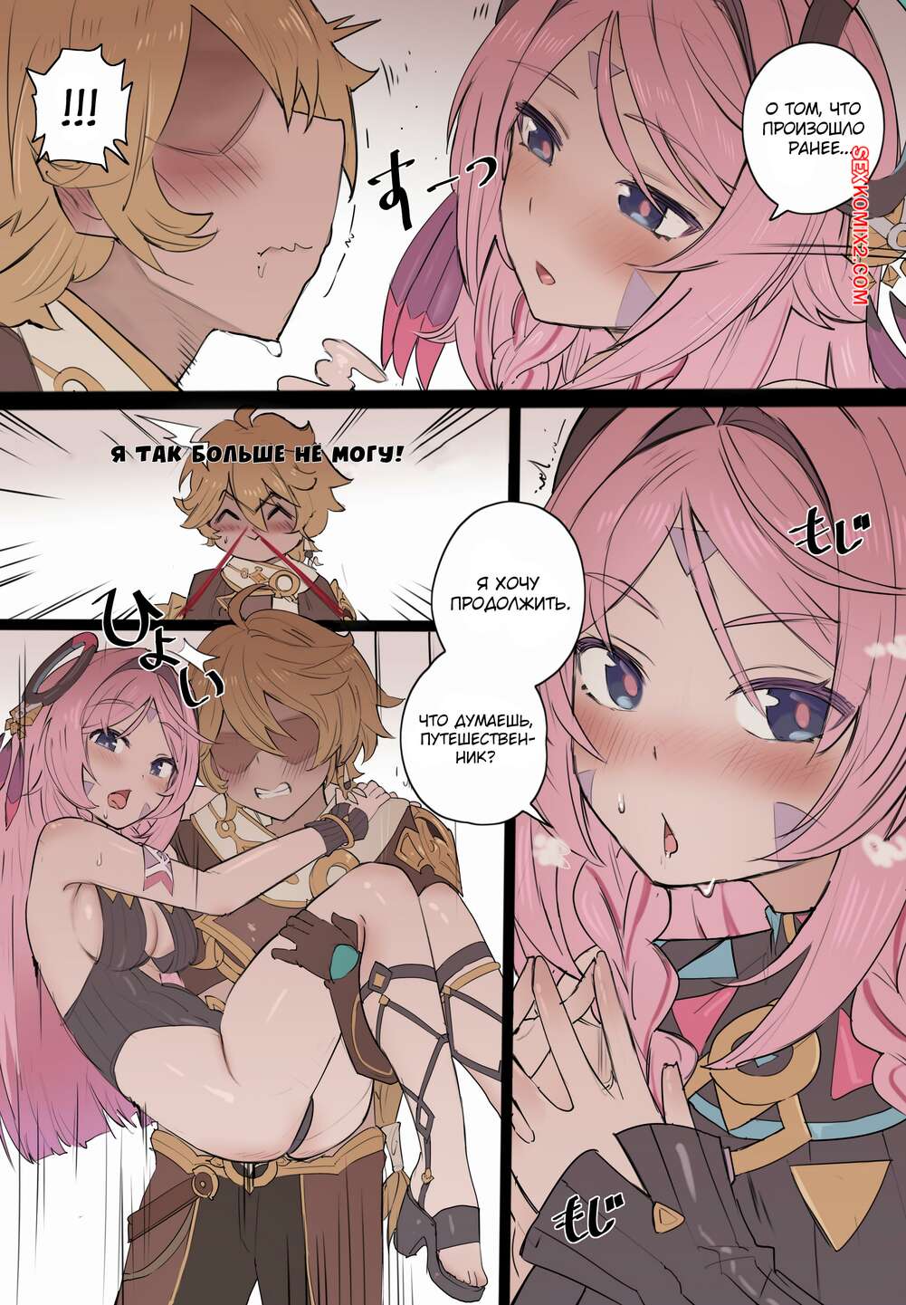 Порно комикс Genshin Impact. Граффити персикового цвета. Kasabuta Парень был очень возбужден и решил повеселиться со своей горячей подругой. Он раздел ее и стал ласкать большие сиськи девушки, после чего хорошенько ее выебал.