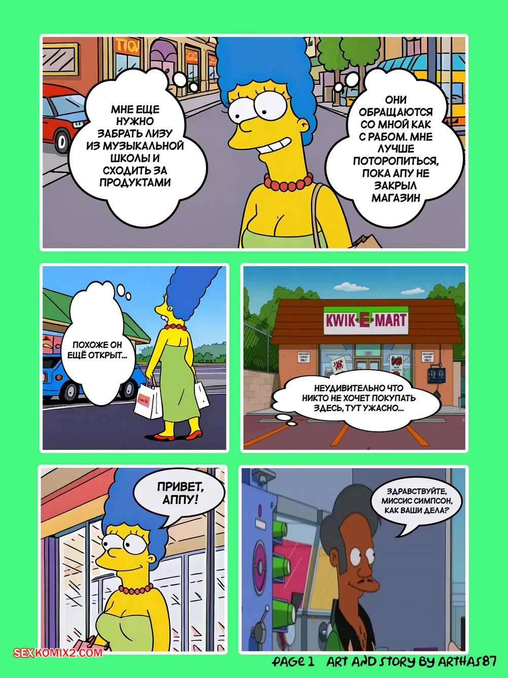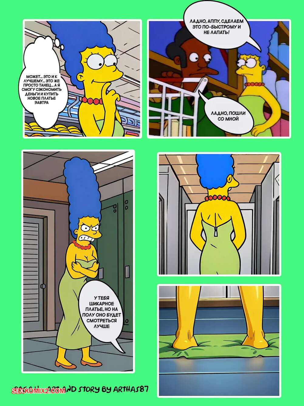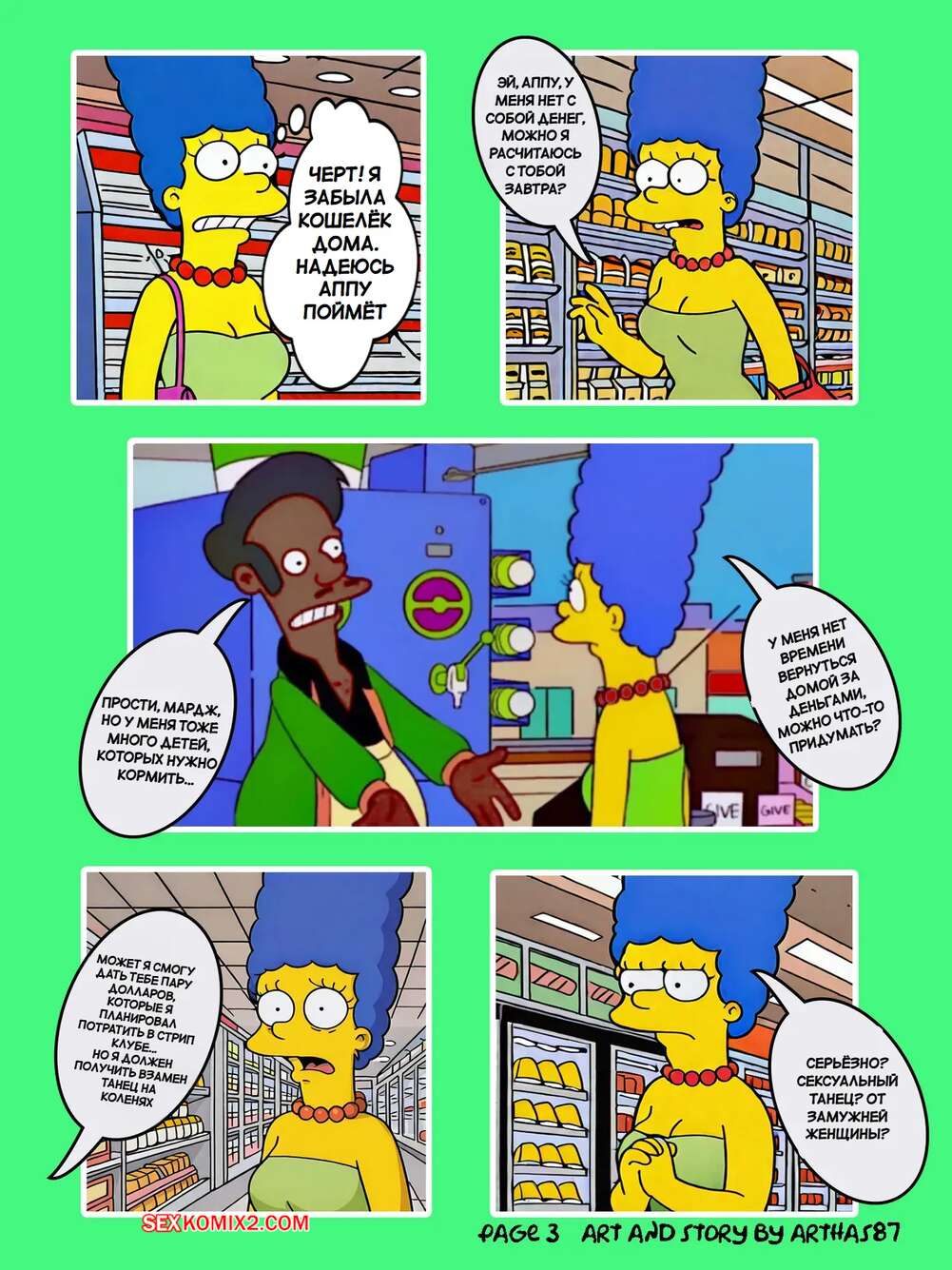 Порно комикс Симпсоны. Быстрый маркет. Quick E Mart. Arthas87 Мардж отправилась в магазин за покупками, но обнаружила на кассе, что оставила кошелек дома. Аппу предложил красотке альтернативный способ оплаты. Они отправились в уединенное место, где красотка раздвинула ножки и дала хозяину магазина выебать свою задницу.