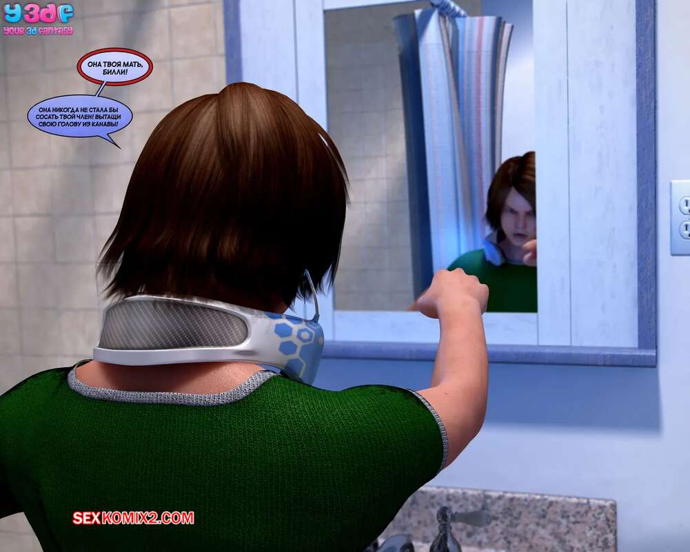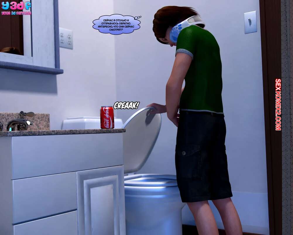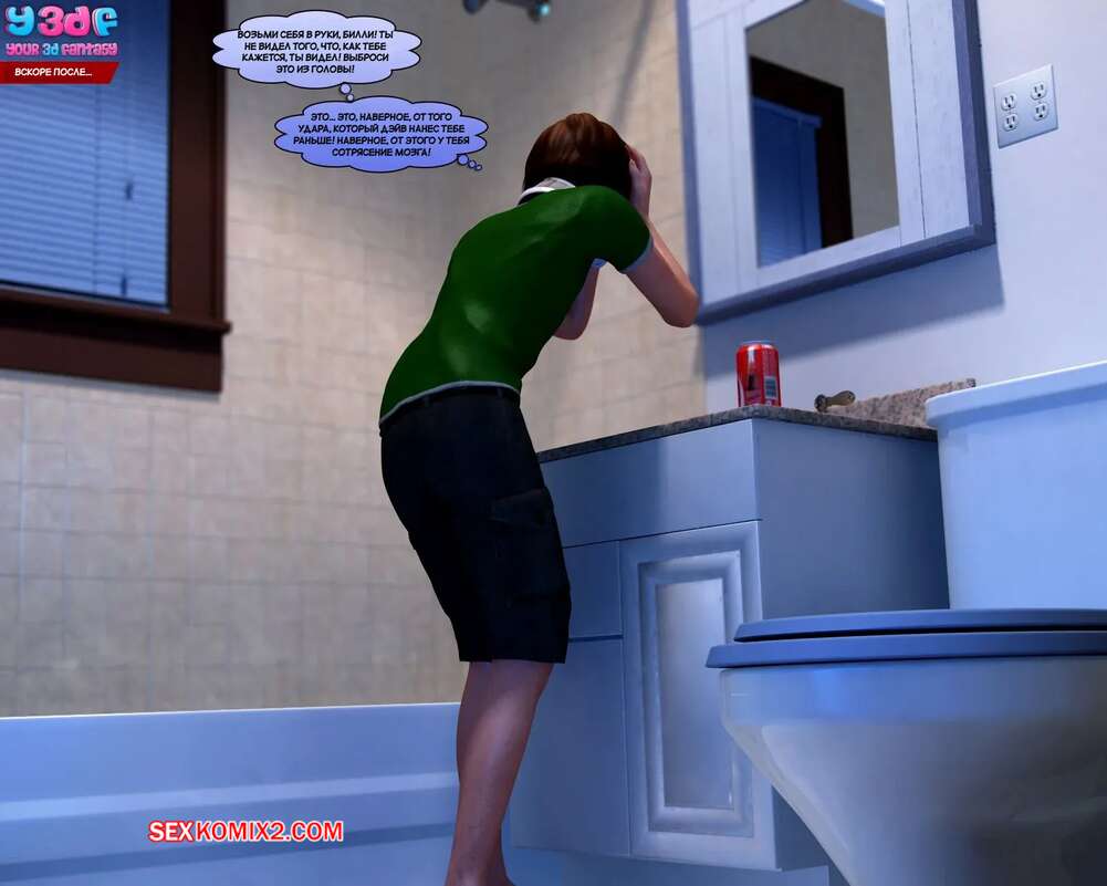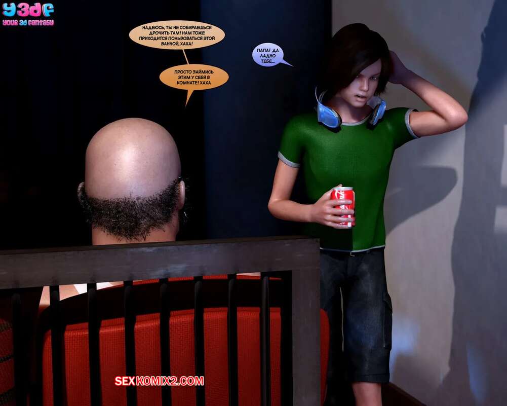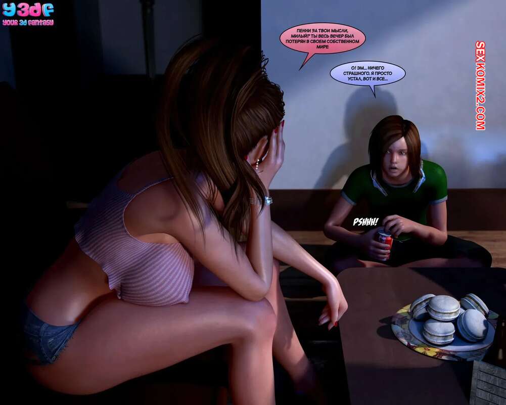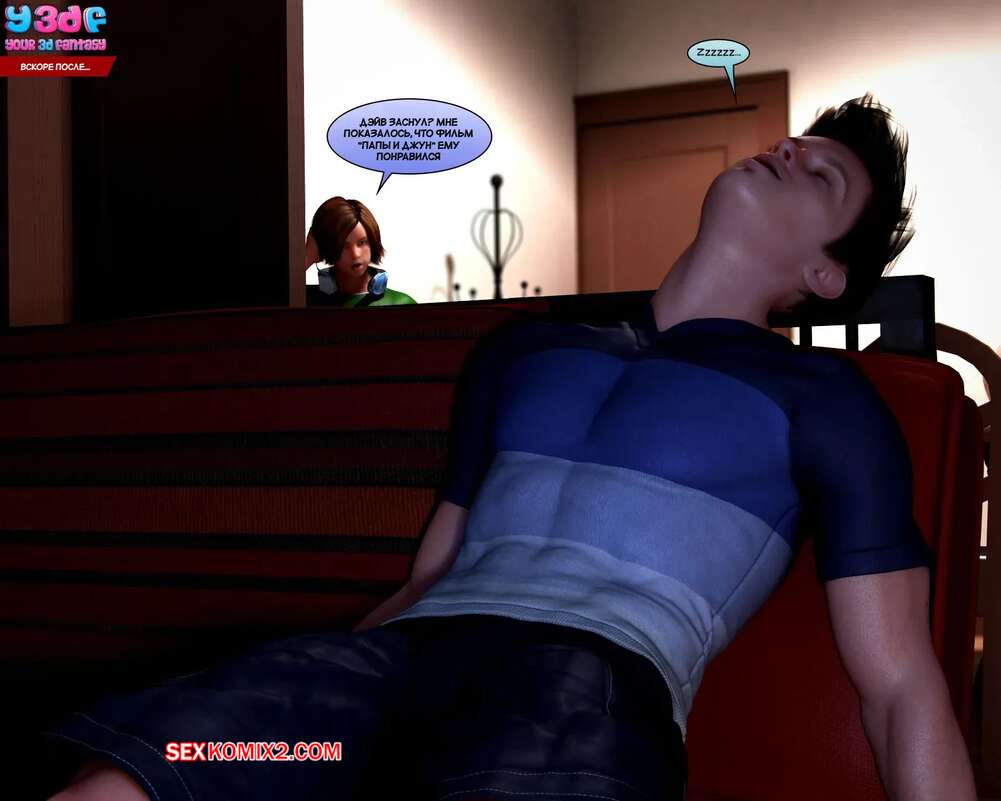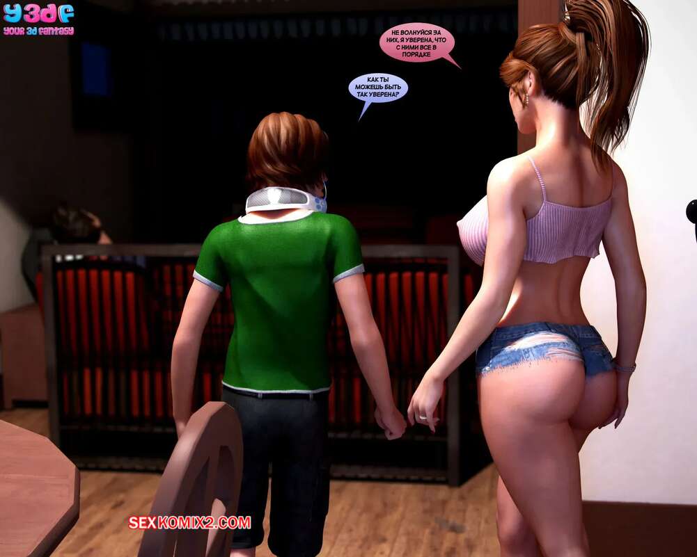 Порно комикс Чужаки в чужой стране. Часть 3. Strangers In A Strange Land. Y3DF Горячая милфа возбудилась, увидев большой член своего сына. Красотка встала на колени и отсосала парню, после чего оседлала его и дала себя хорошенько выебать.