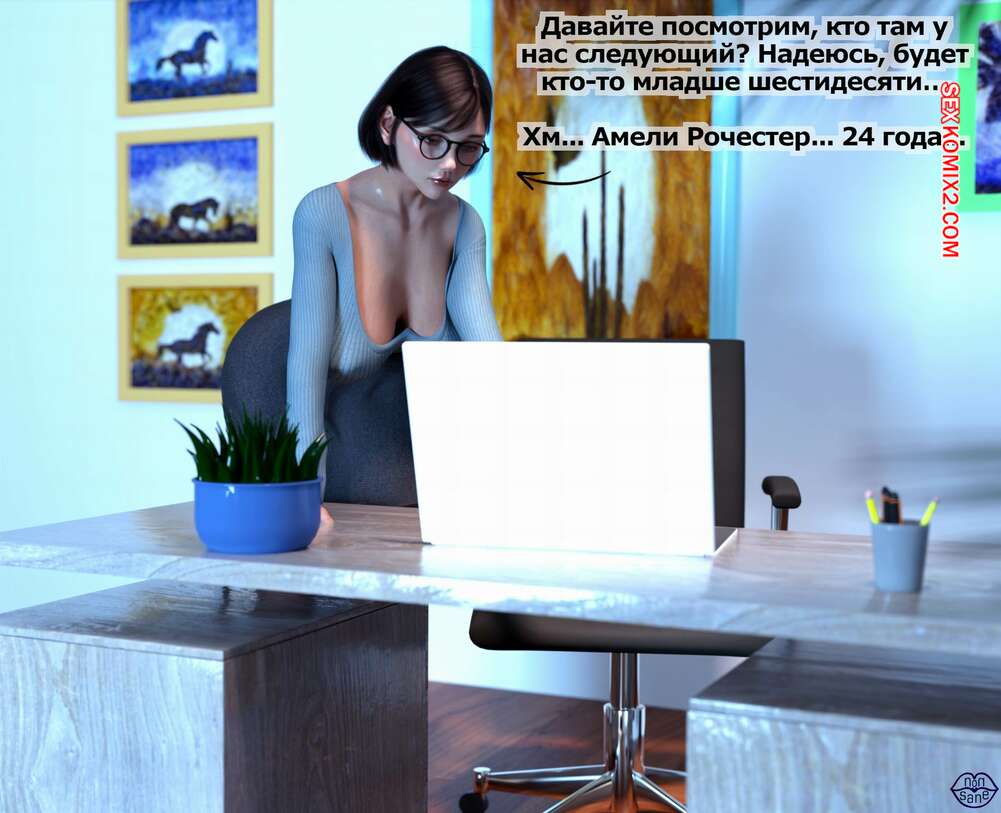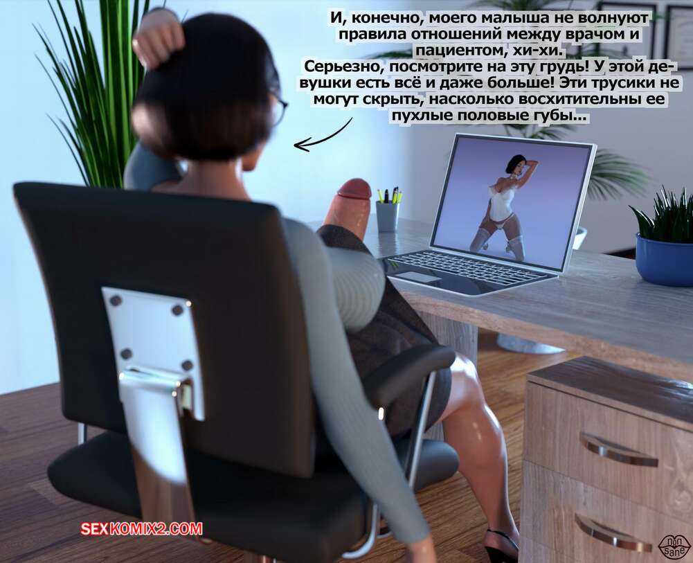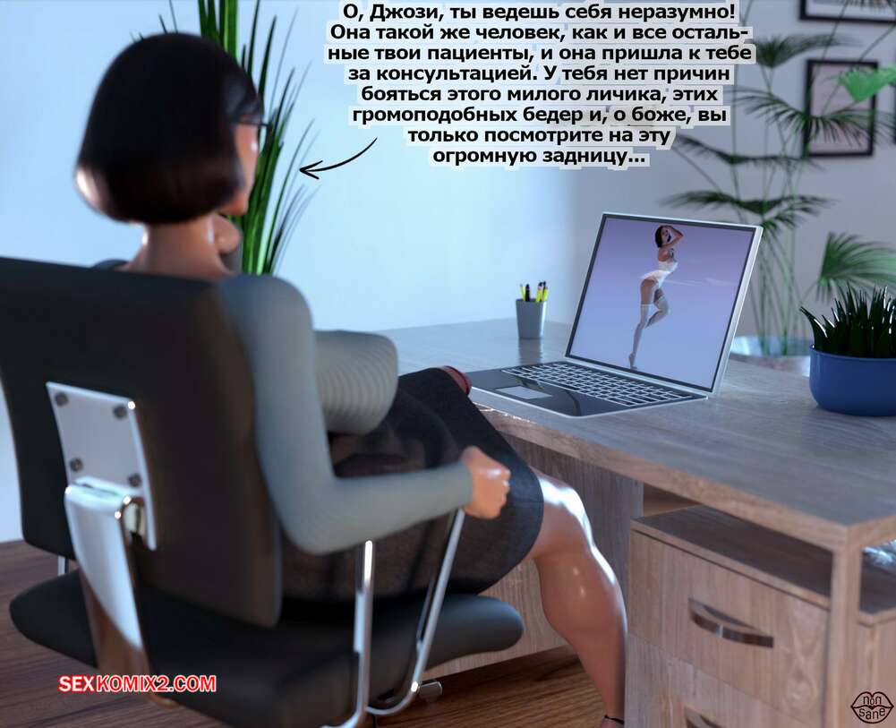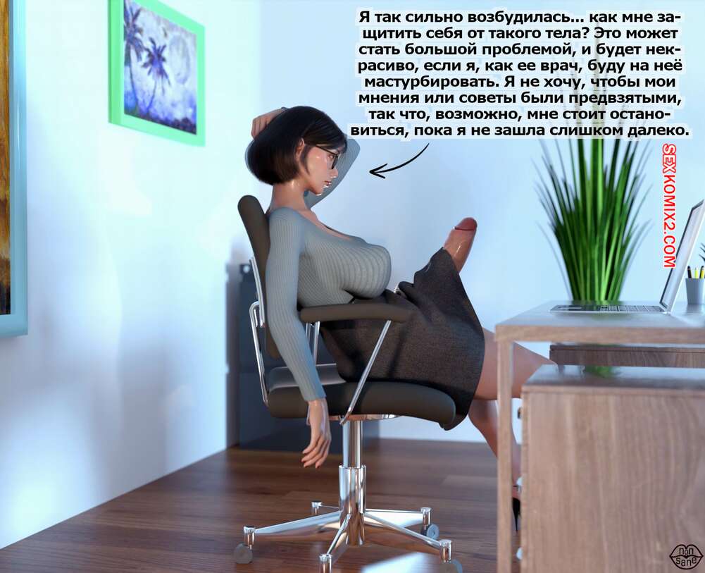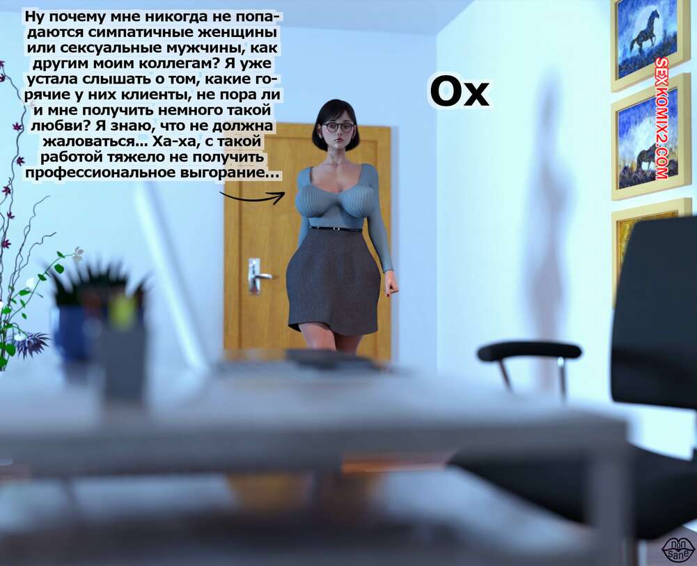 Порно комикс Adicktion Therapy. Часть 1. UnModel. Nonsane Горячая брюнетка с огромным членом была очень возбуждена у себя в офисе. Красотка достала свой хуй и стала его сосать, после чего обильно кончила себе на лицо.