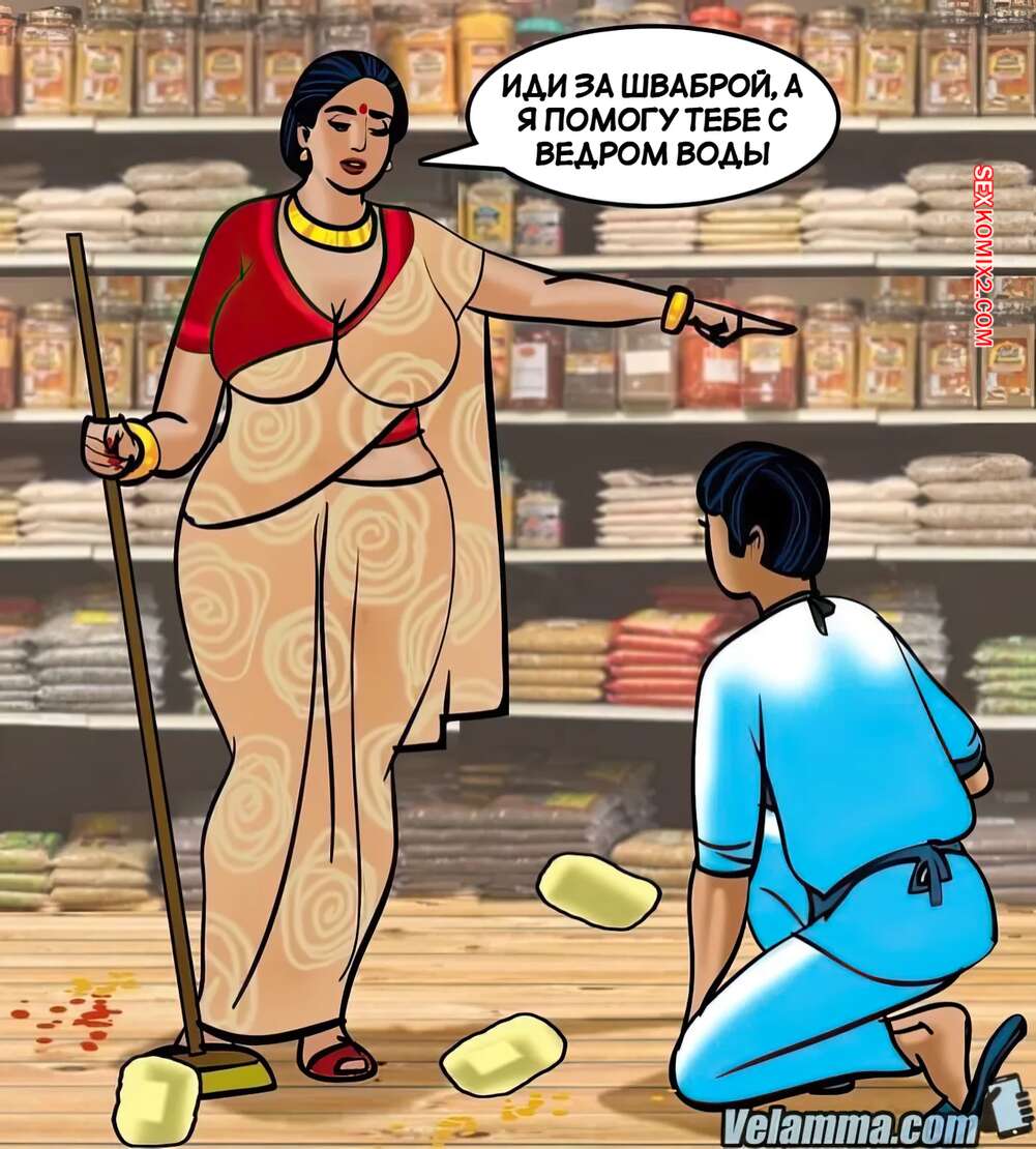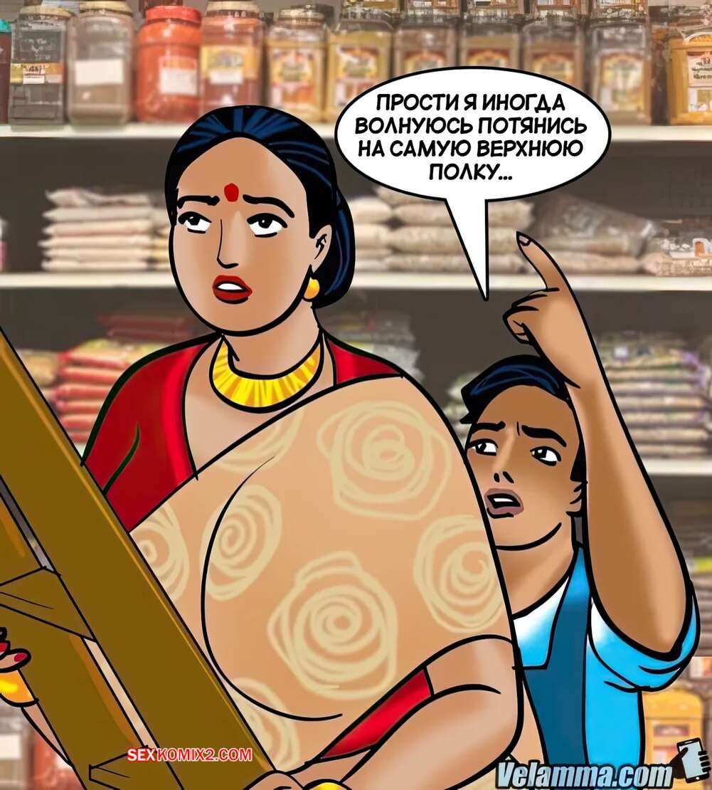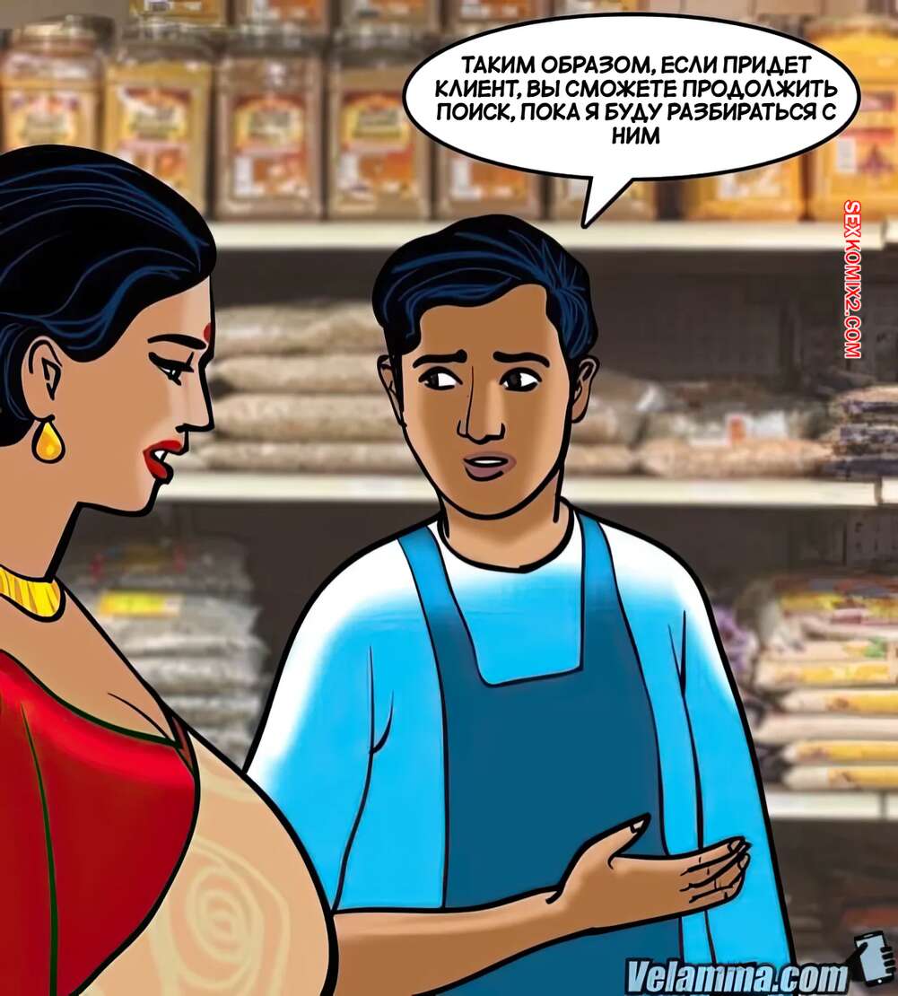 Порно комикс Веламма. Часть 67. Velamma. Velamma Горячая милфа Веламма пришла в магазин, где не смогла устоять перед молодым парнем. Красотка встала на колени и отсосала хуй паренька, после чего дала ему выебать свою пизденку.