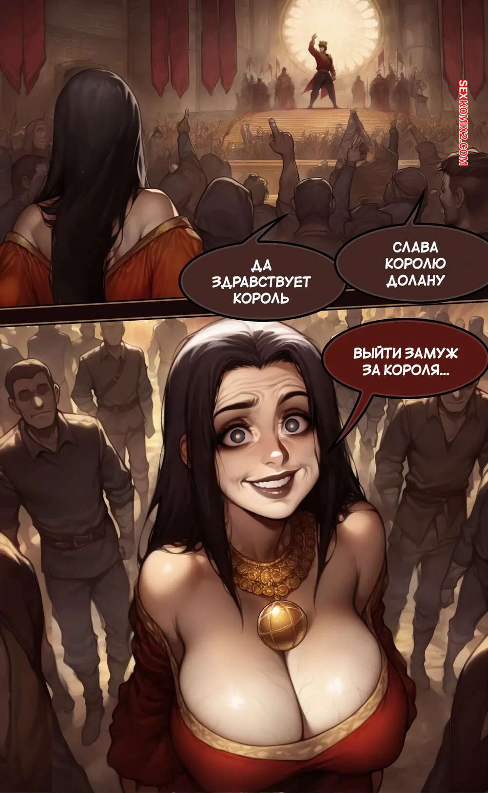 Порно комикс Убежище Харпера. Новый король. Harpers Keep. The new King Горячая брюнетка решила соблазнить нового короля, чтобы занять место на престоле. Она пришла к нему, пока она купался, и стала дрочить его хуй большими сиськами, предлагая королю жениться на ней.