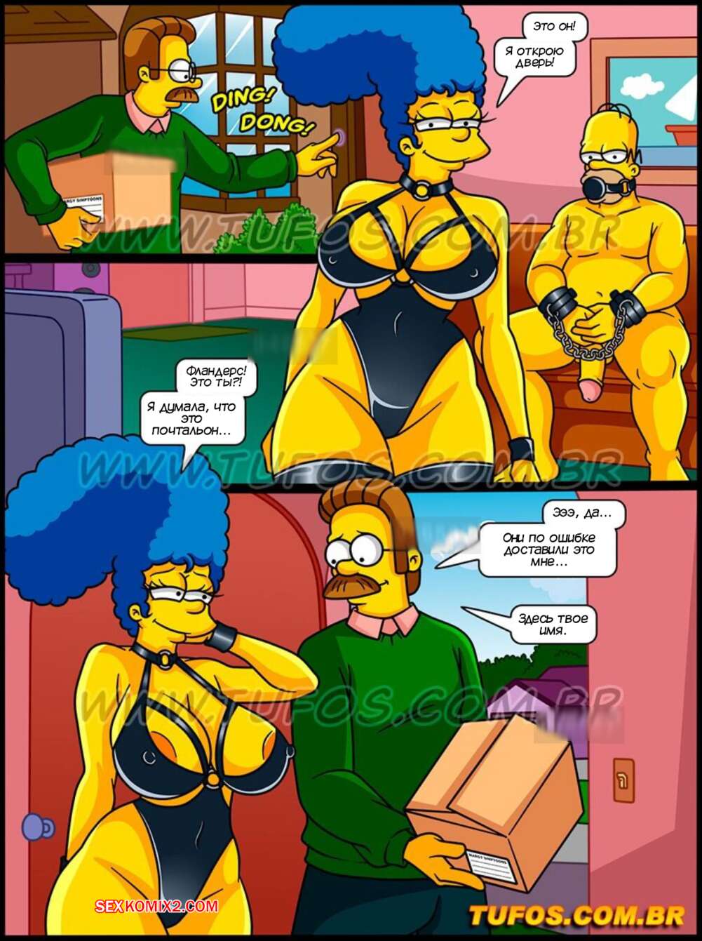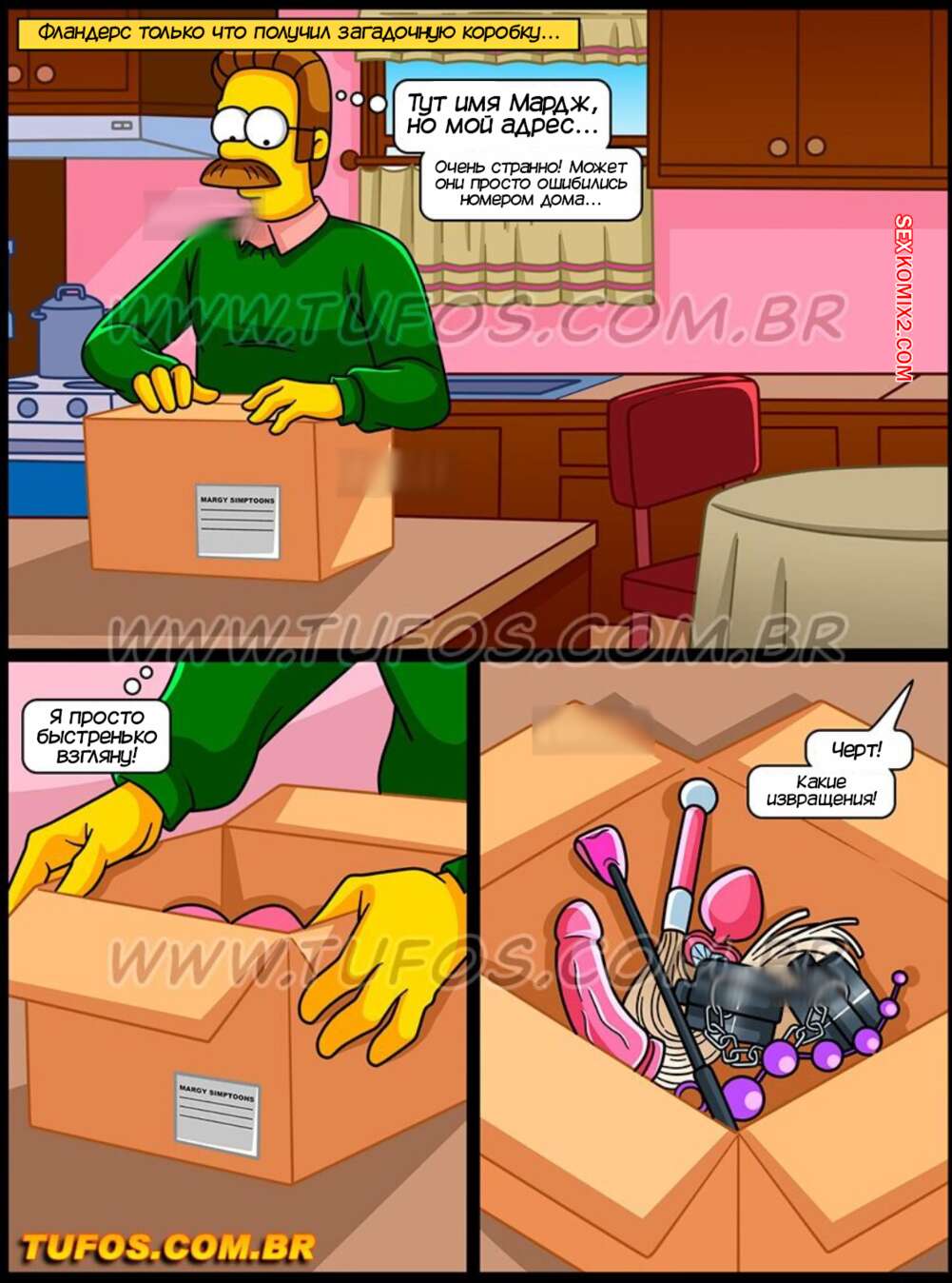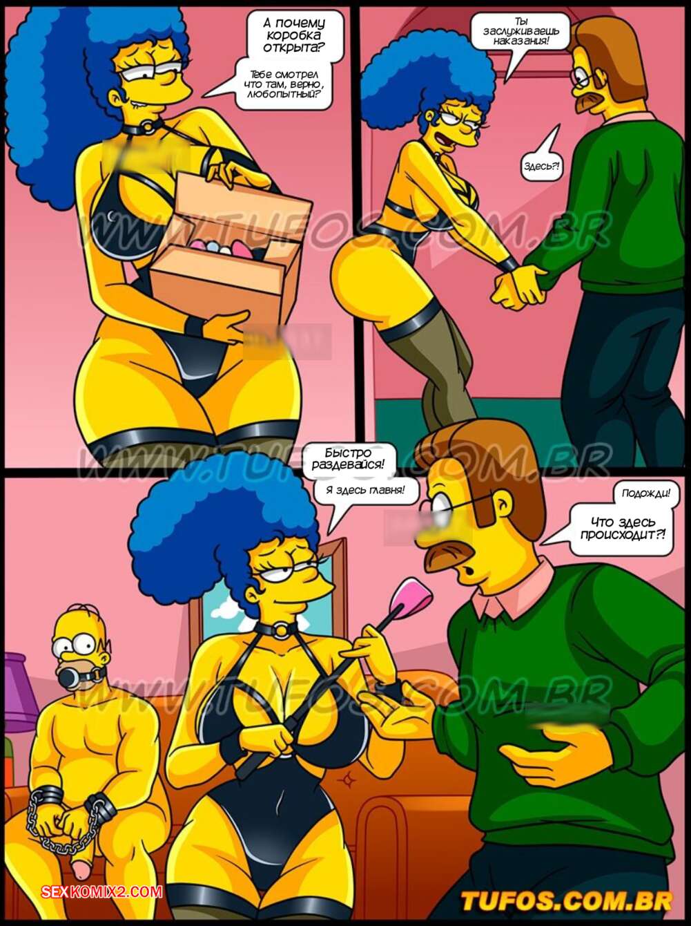 Порно комикс Симпсоны. Часть 72. Os Simptoons. Tufos Горячая милфа Мардж и Гомер специально подсунули Фландерсу коробку с секс игрушками, чтобы заманить его к себе домой. Когда к ним пришел сосед, Мардж устроила шоу для мужа и дала Фландерсу себя трахнуть все дырочки на глазах мужа.
