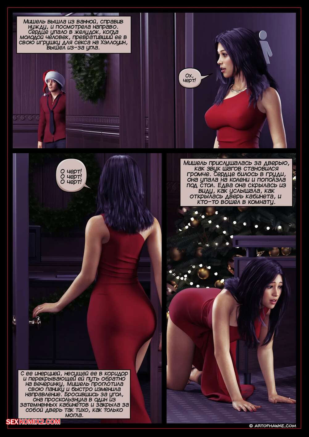 Порно комикс Офисная рождественская вечеринка. Office Xmas Party. Hawke. Мишель отправилась со своим женихом на рождественскую вечеринку в его офис. Там красотка вновь попала в руки Джастина, который хорошенько выебал пизденку девушки.