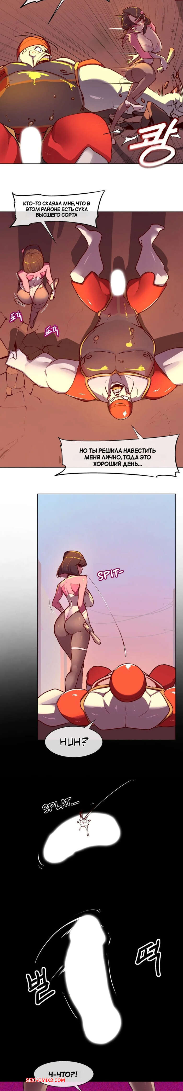 Порно комикс Секрет. Герой оргазма. Часть 3. Secret. Orgasm Hero Горячая брюнетка вступила в схватку со злодеем. Она быстро повалила его на землю, после чего оседлала его большой хуй и дала выебать свою пизденку, получив огромное удовольствие.