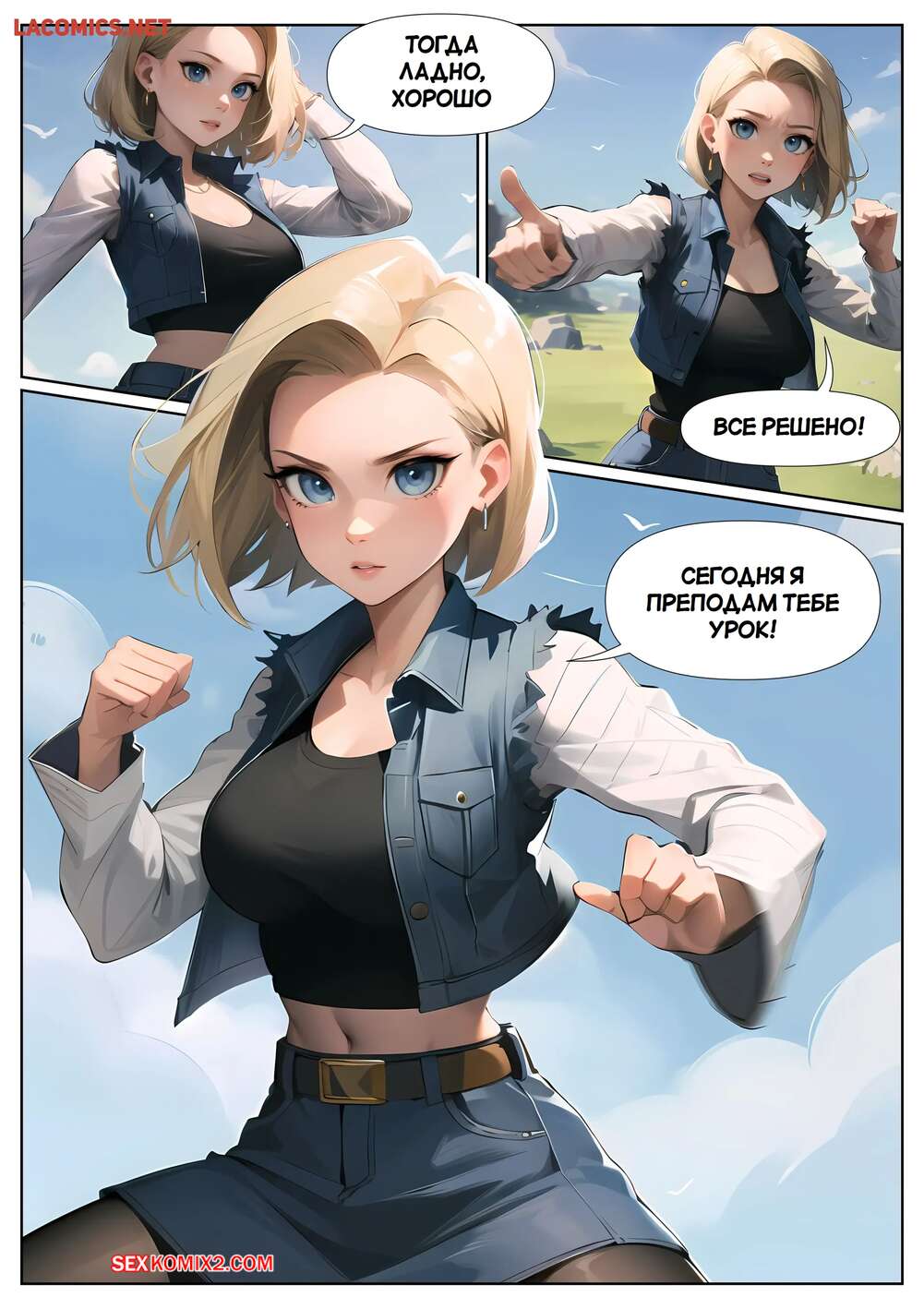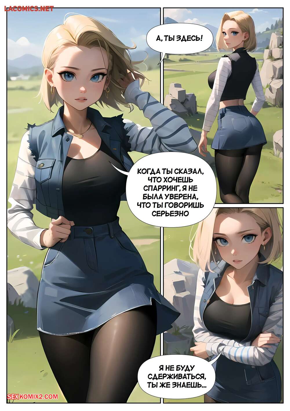Порно комикс Dragon Ball. Андроид 18. Android 18 Comic. Kate Sketches. Парень соблазнил Андроид 18 своим большим членом. Красотка встала на колени и отсосала большой хуй паренька, после чего дала ему себя выебать и кончить ей на сиськи.