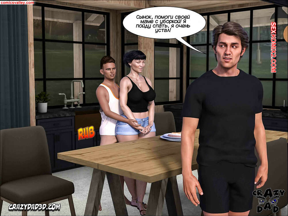 Порно комикс Выхода нет. Часть 3. No Way Out. CrazyDad3D Алекса приготовила ужин для мужа, после чего он отправился спать. Красотка осталась на кухне наедине с Деннисом и он стал соблазнять мамочку, желая трахнуть ее.
