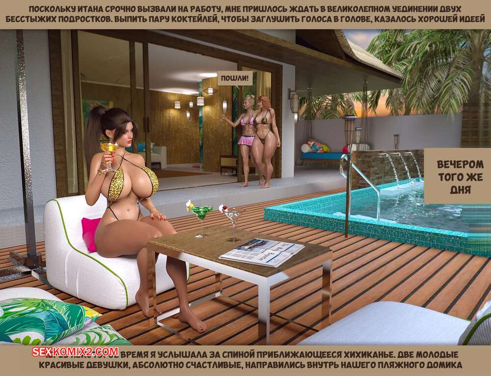 Порно комикс Семейные тайны. Часть 3. Family Secrets. Shockabuki Красотки решили повеселиться после отдыха у бассейна. Две девушки встали на колени и стали сосать хуй блондиночки, после чего раздвинули ножки и дали ей выебать себя во все дырочки.