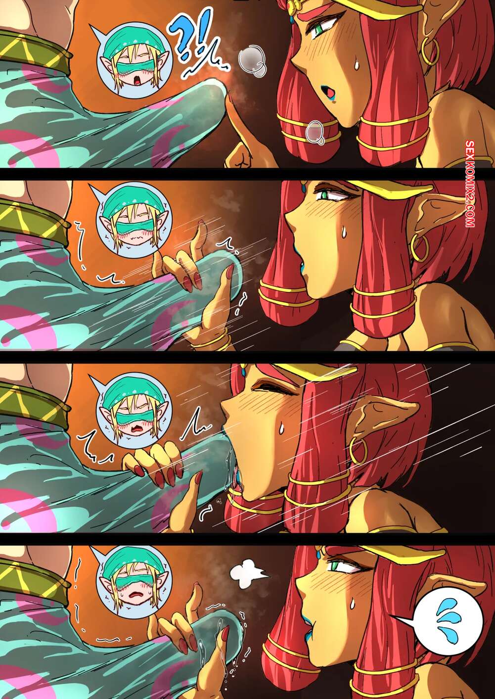 Порно комикс The Legend of Zelda. Rijus Dungeon Date in Breath of the Wild. pzx. Рыжая красотка заметила стояк парня и сильно возбудилась. Она разделась и вставила в себя хуй паренька, чтобы он хорошенько ее выебал и доставил ей удовольствие.