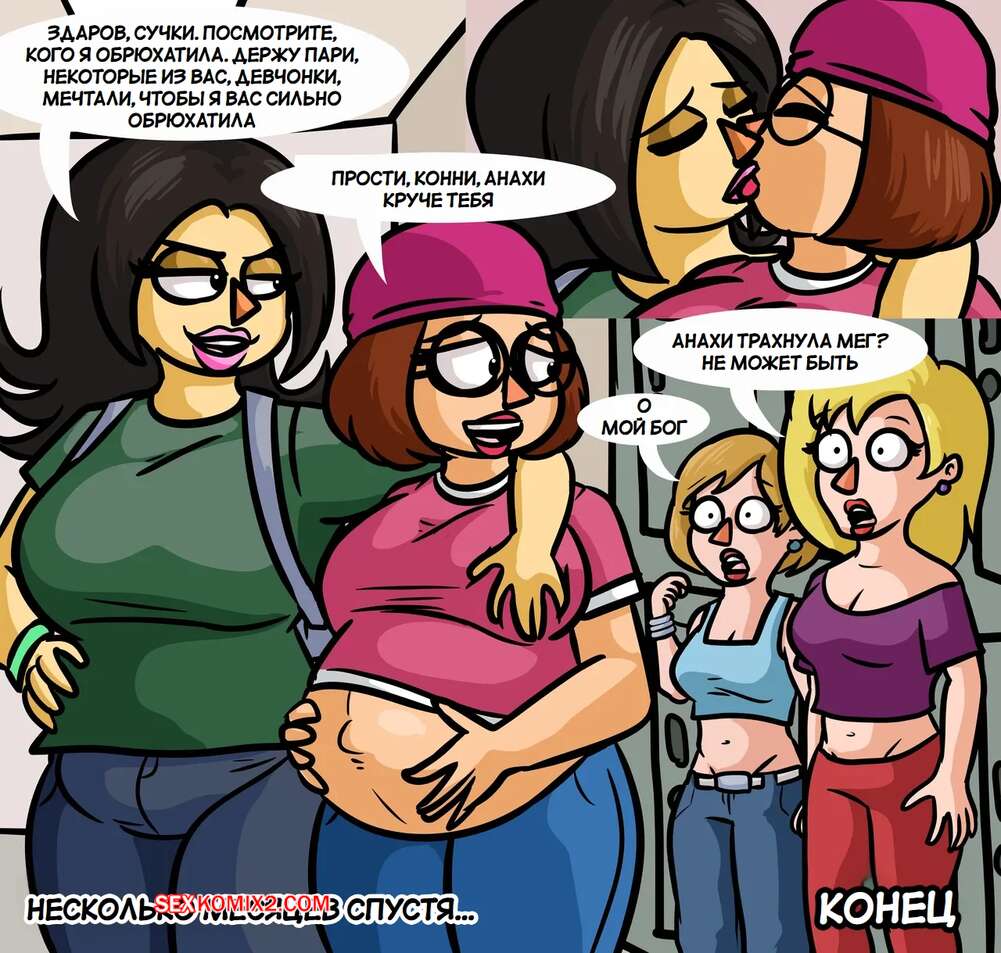 Порно комикс Гриффины. Послешкольная деятельность Мэг Гриффин и Анахи. max1mus. Горячая брюнетка с большим членом была очень возбуждена после уроков и затащила Мэг в отдельный кабинет. Она дала ей у себя отсосать, после чего выебала пизденку подруги и кончила в нее.