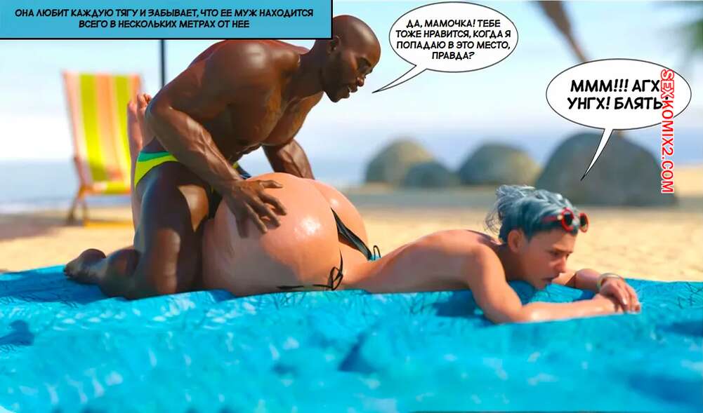 Порно комикс Чем старше ягода. The Older the Berry. Sushiihouse. Горячая милфа загорала на пляже и привлекла внимание темнокожего парня своей огромной задницей. Он стал натирать ее кремом, после чего выебал пизденку милфы и заполнил ее спермой.