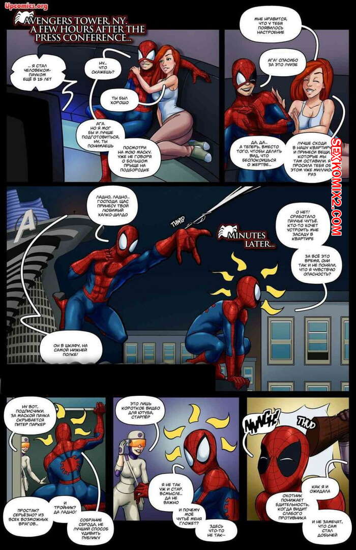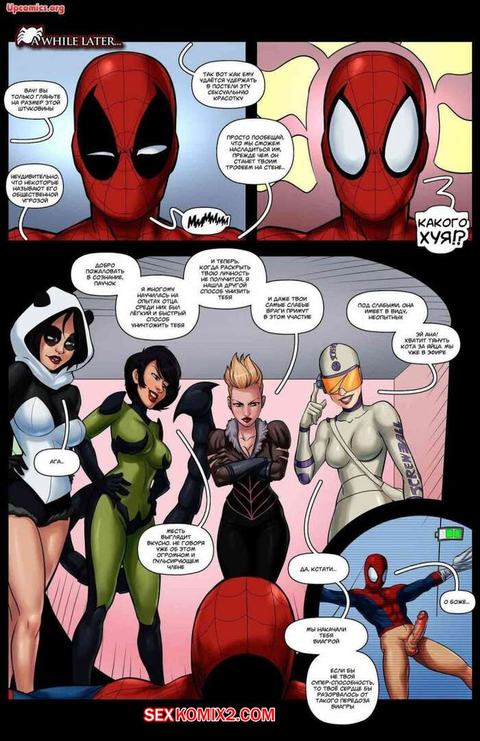 Порно комикс Человекпаук. Гражданская шлюха. Tracy Scops. ЧеловекПаук попал в окружение четырех красоток, которые связали его, чтобы поиграться с его хуем и хорошенько повеселиться. Паучок лежал ебясь с дамочками, не в силах чтото сделать. Но к счастью, его спасли супергероини и решили тоже поебаться с паучком.