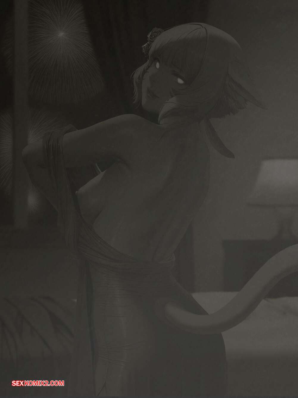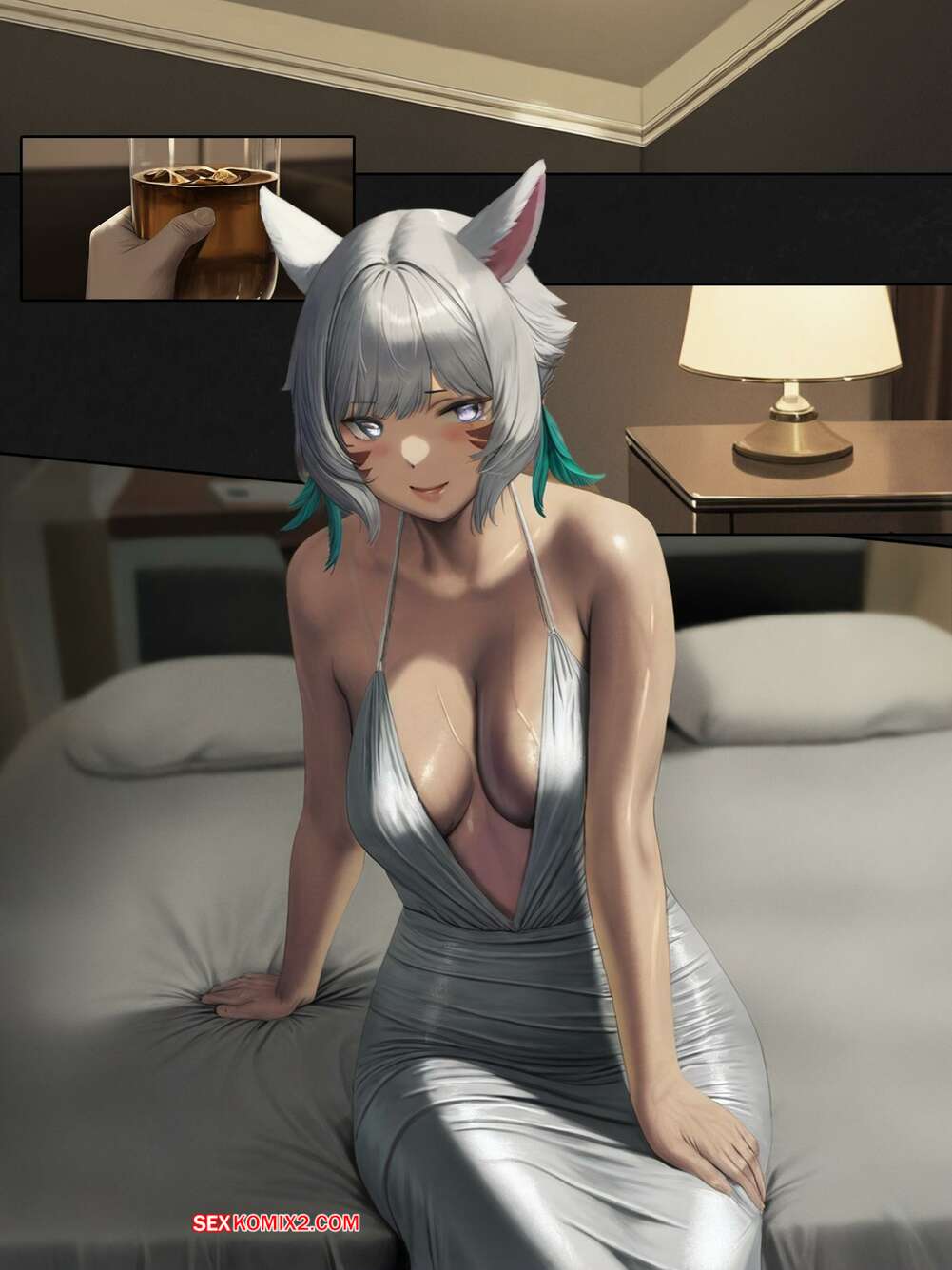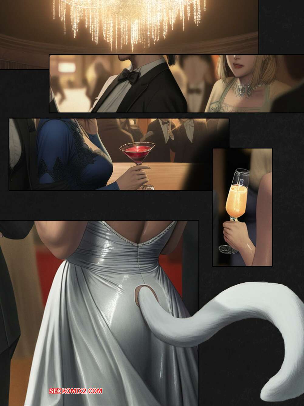 Порно комикс Final Fantasy. Шёлк между нами. The silk between us. FEFanatica Горячая блондинка соблазнила парня на балу и позвала его в номер, чтобы повеселиться. Красотка разделась и отсосала хуй парня, после чего дала ему себя выебать.