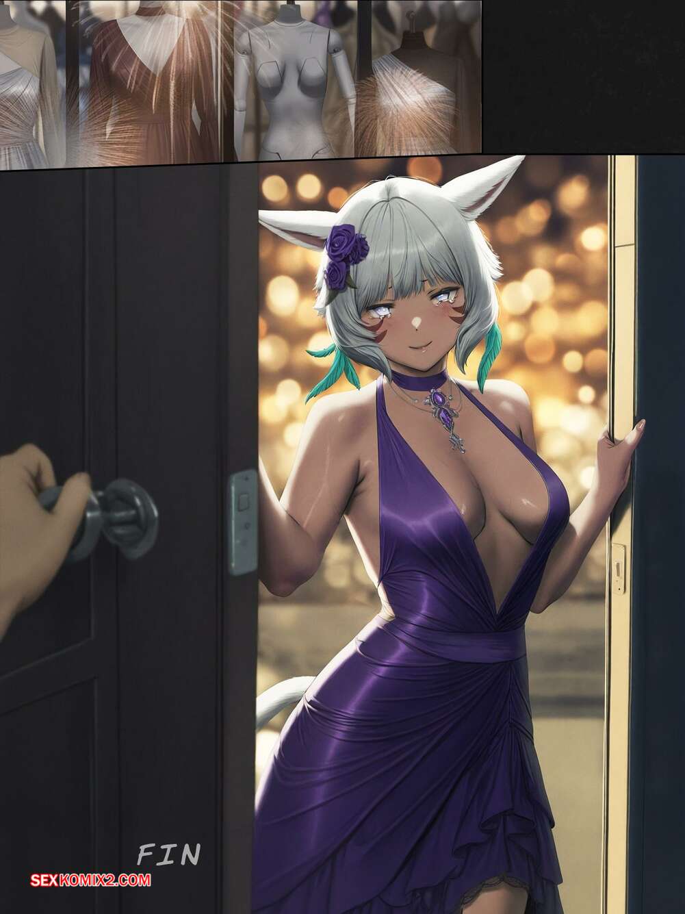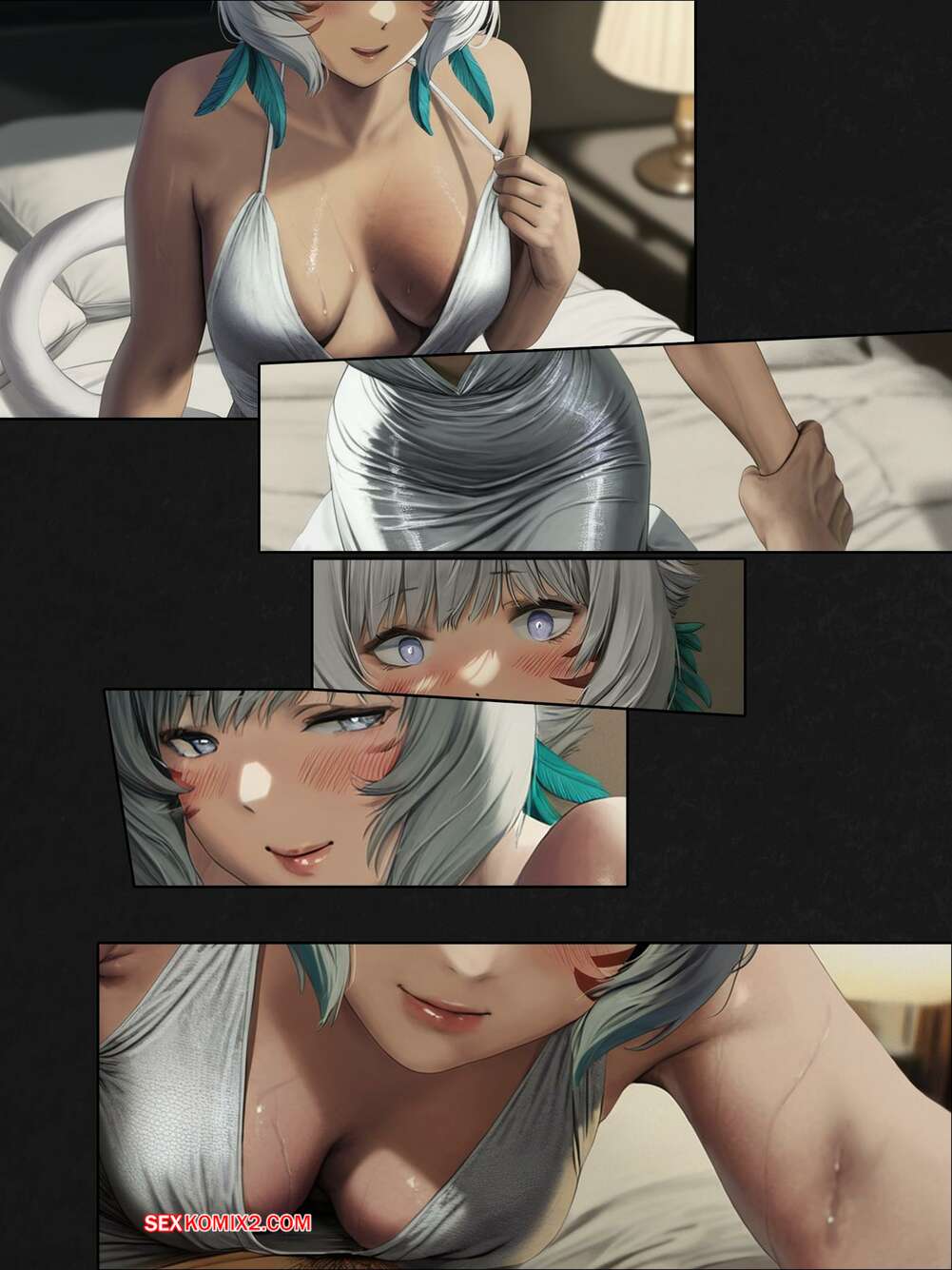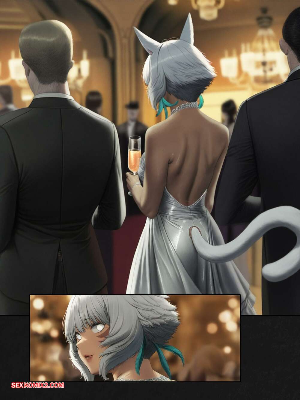 Порно комикс Final Fantasy. Шёлк между нами. The silk between us. FEFanatica Горячая блондинка соблазнила парня на балу и позвала его в номер, чтобы повеселиться. Красотка разделась и отсосала хуй парня, после чего дала ему себя выебать.
