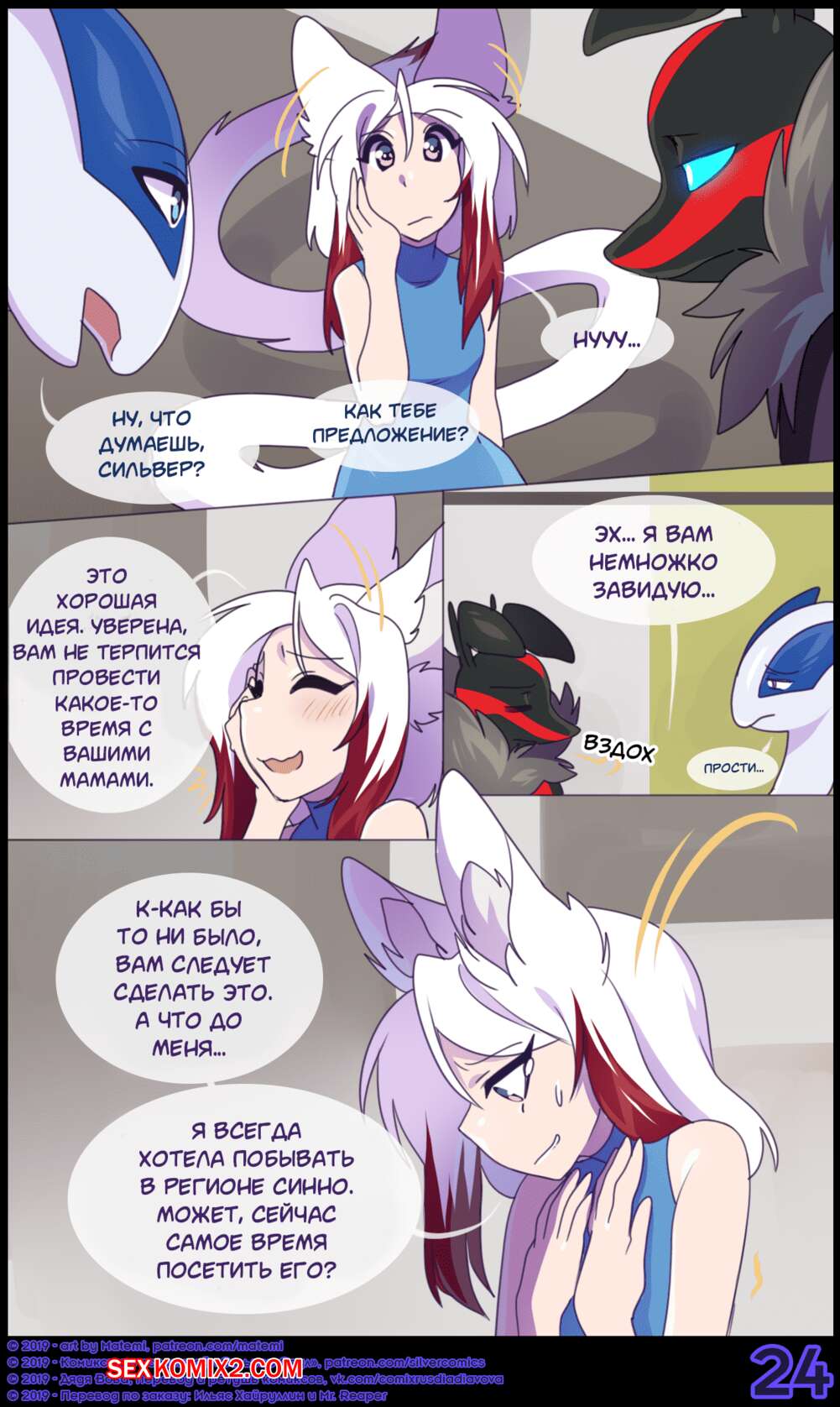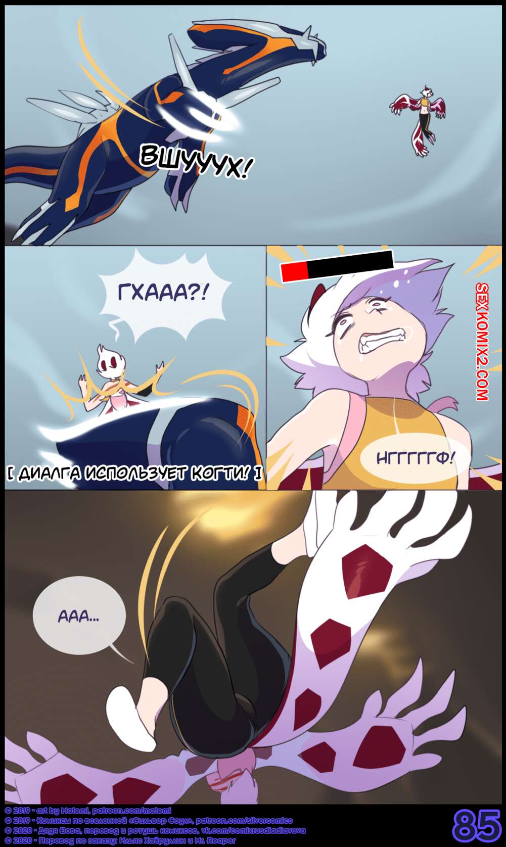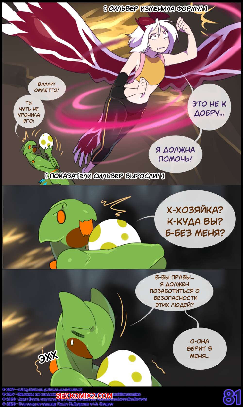 Порно комикс Покемоны. Сильвер Соул. Часть 9. Сильвер решила уединиться с Финном и его покемоном, чтобы развлечься и хорошенько поебаться. Проведя хорошо время, Сильвер отправилась на схватку, где получила тяжелое ранение.