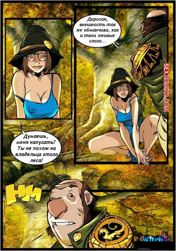 Порно комикс Ведьма. Witch Старик застал юную ведьмочку дрочащую свою пизду в его лесу. Он сделал ей замечание, но она решила прогнать его своей магией. Но в его лесу она не действовала, поэтому мужик схватил ее и силой выебал ее своим огромным хуем.