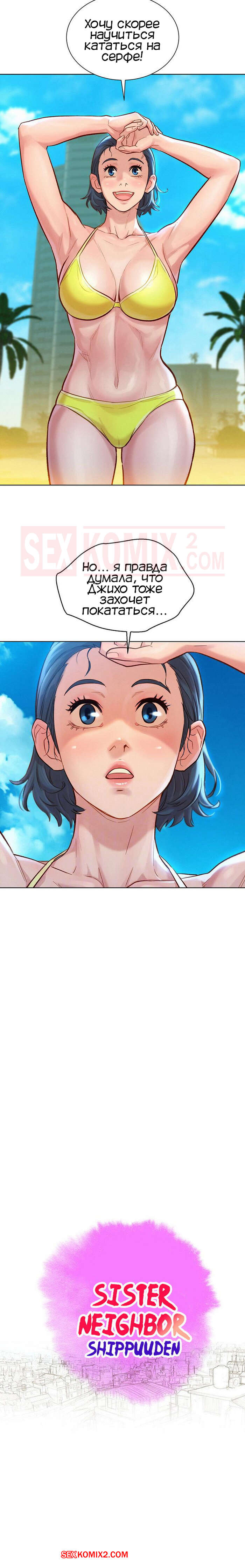 Порно комикс Сестра по соседству. Часть 125. Sister Neighbors. Парень позвал девушку на пляж. чтобы научить её кататься на сёрфе, но вместо этого отвел красотку в укромное местечко и трахнул.