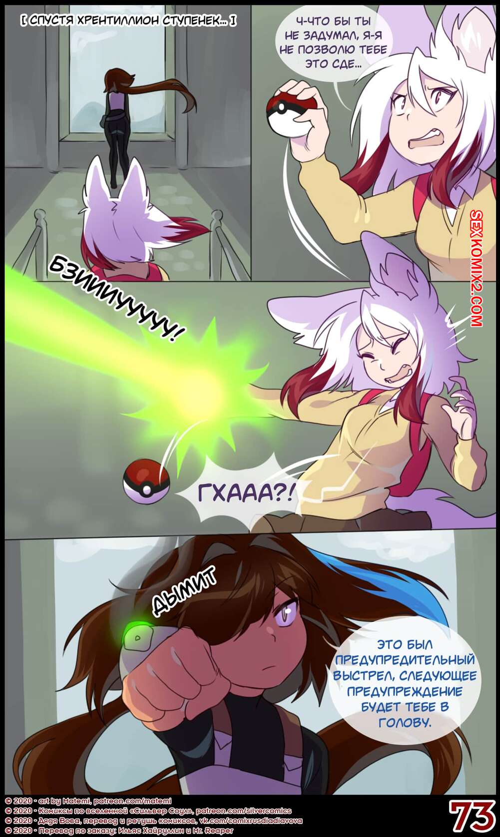 Порно комикс Покемоны. Сильвер Соул. Часть 11. Пустота Во время своего путешествия Сильвер встретила даму с огромным членом и просто не могла себе позволить упустить такую возможность. Девушки устроили страстную еблю, опробовав много различных поз и обильно кончив.