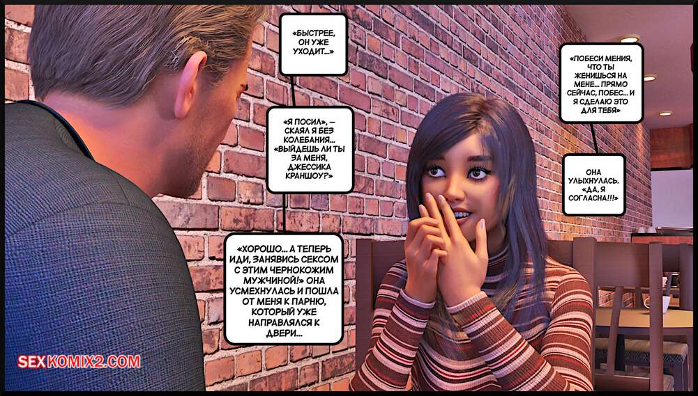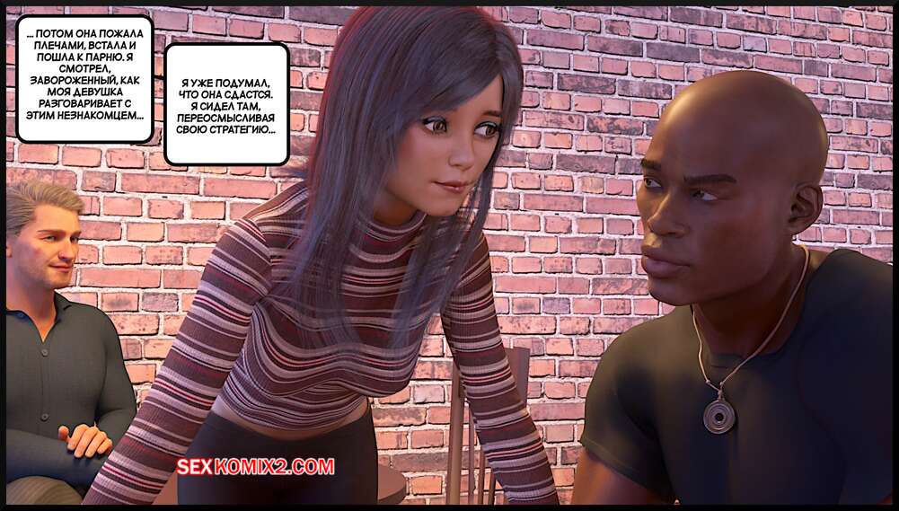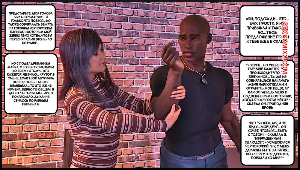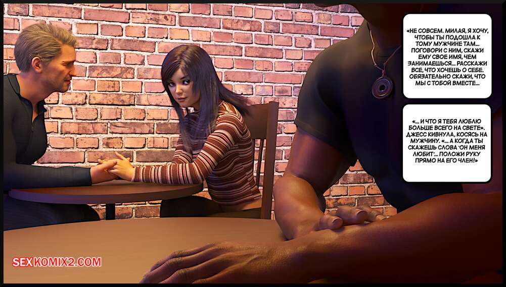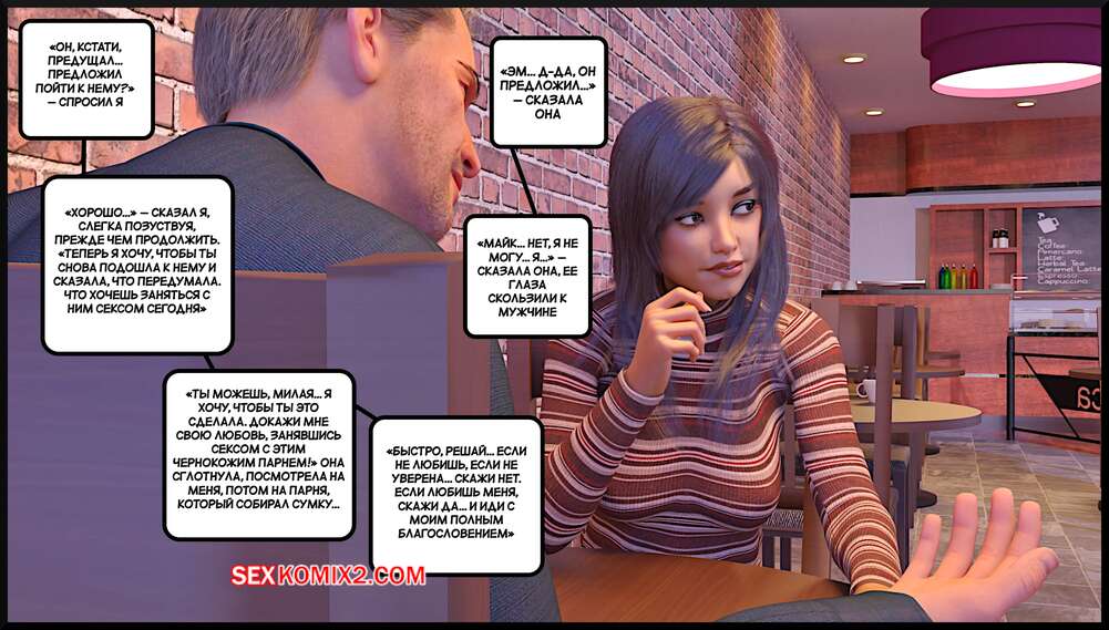 Порно комикс Создание горячей жены. Часть 4. Making Of a Hotwife. Alison Hale Горячая брюнетка отправилась в кафе на встречу с темнокожим парнем. Они немного поболтали, после чего отправились домой к парню. Там девчуля разделась и классно отшлифовала хуй парня ротиком, после чего дала ему себя выебать.