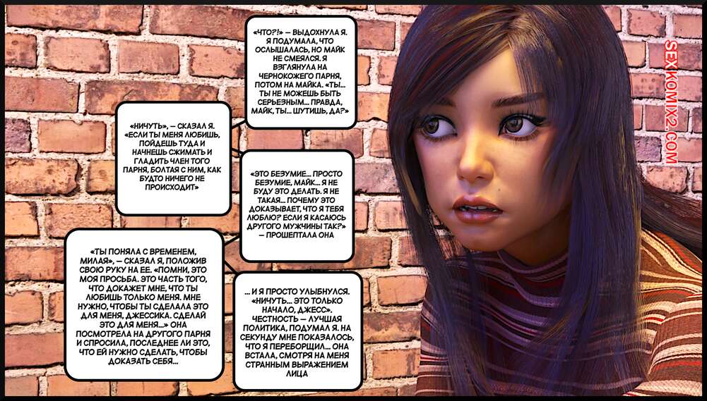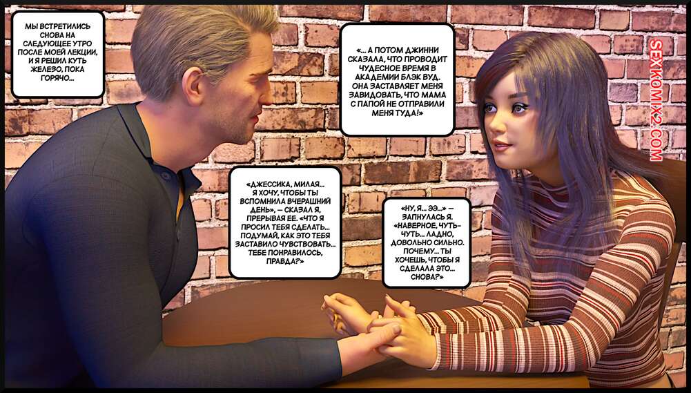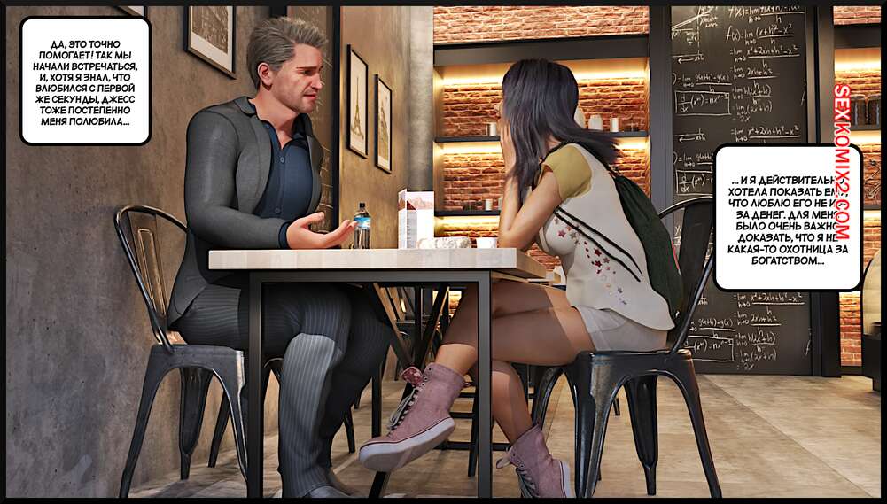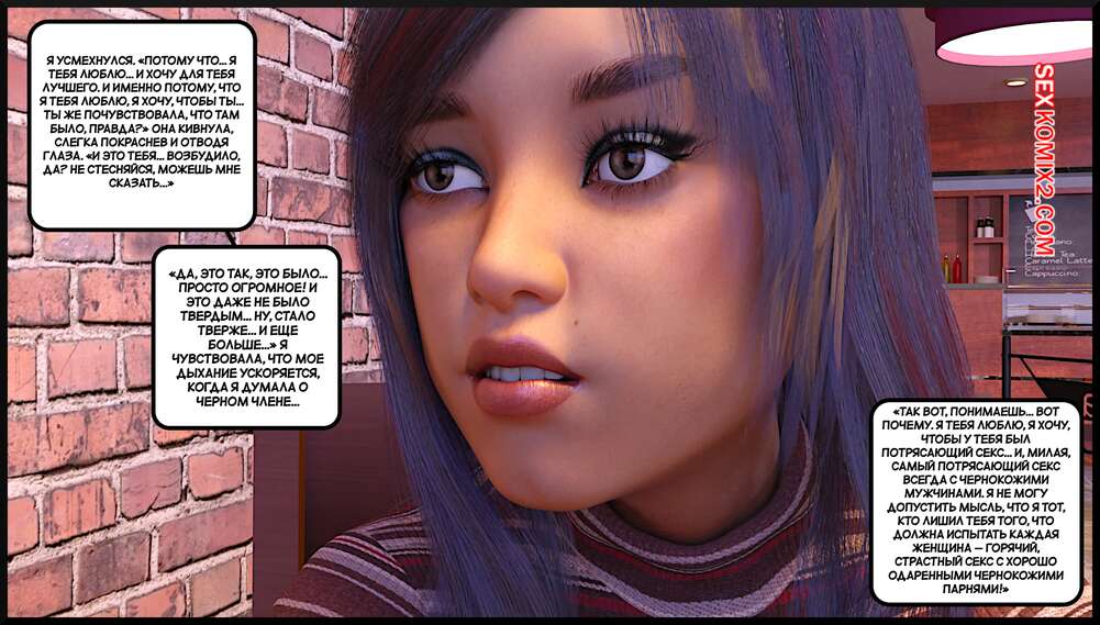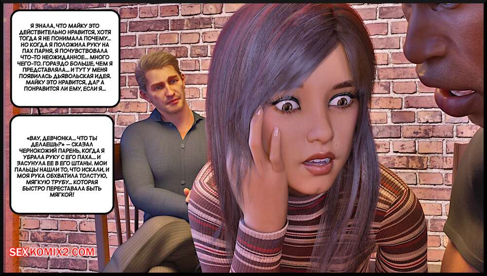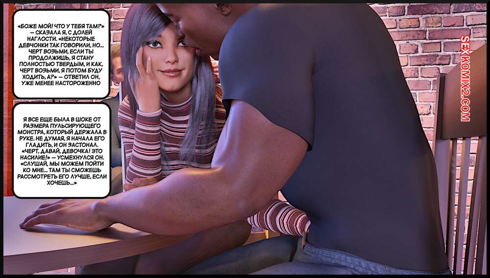 Порно комикс Создание горячей жены. Часть 4. Making Of a Hotwife. Alison Hale Горячая брюнетка отправилась в кафе на встречу с темнокожим парнем. Они немного поболтали, после чего отправились домой к парню. Там девчуля разделась и классно отшлифовала хуй парня ротиком, после чего дала ему себя выебать.