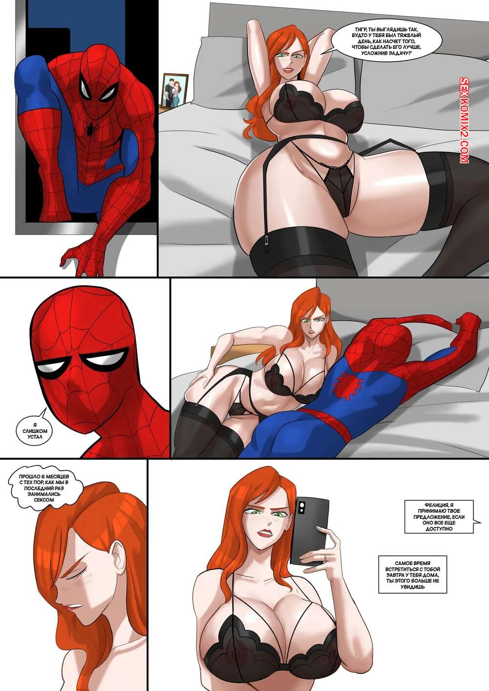 Порно комикс Человек Паук. Все справедливо в любви и на войне. Venomarts00 Человек Паук вернулся домой, где его ждала Мэри Джейн, желающая заняться сексом. Он стал динамить девушку, а она переживает о том, что у них нет секса уже восемь месяцев.