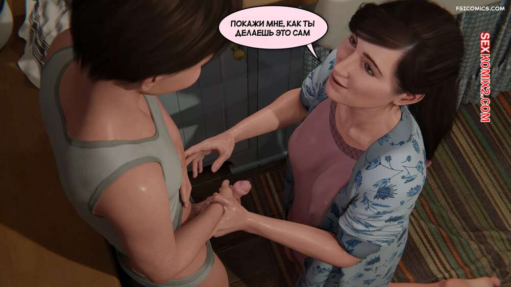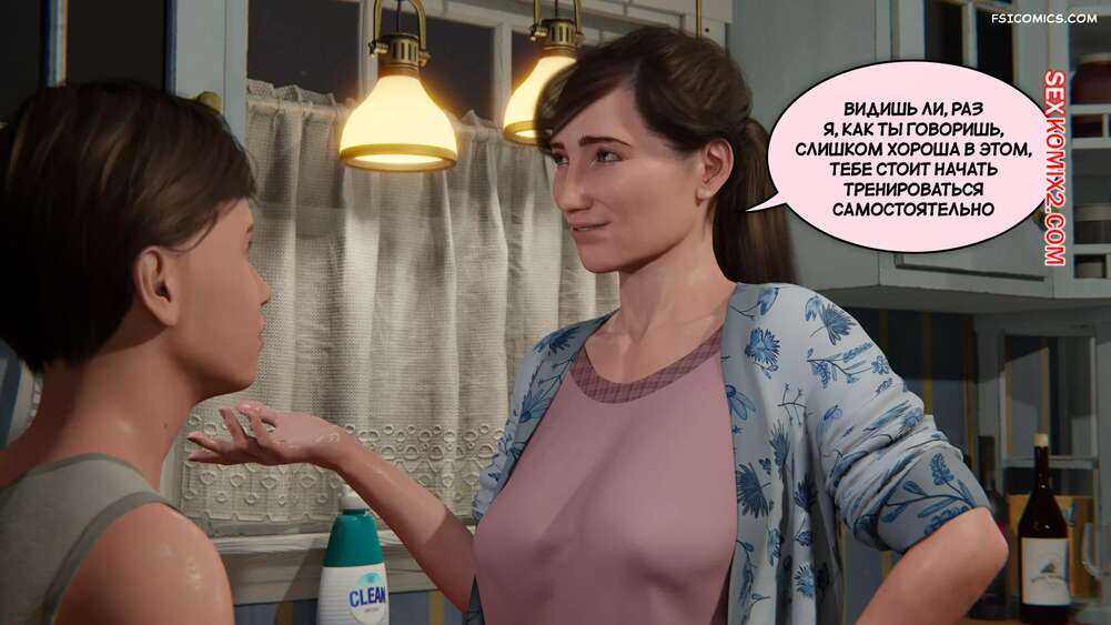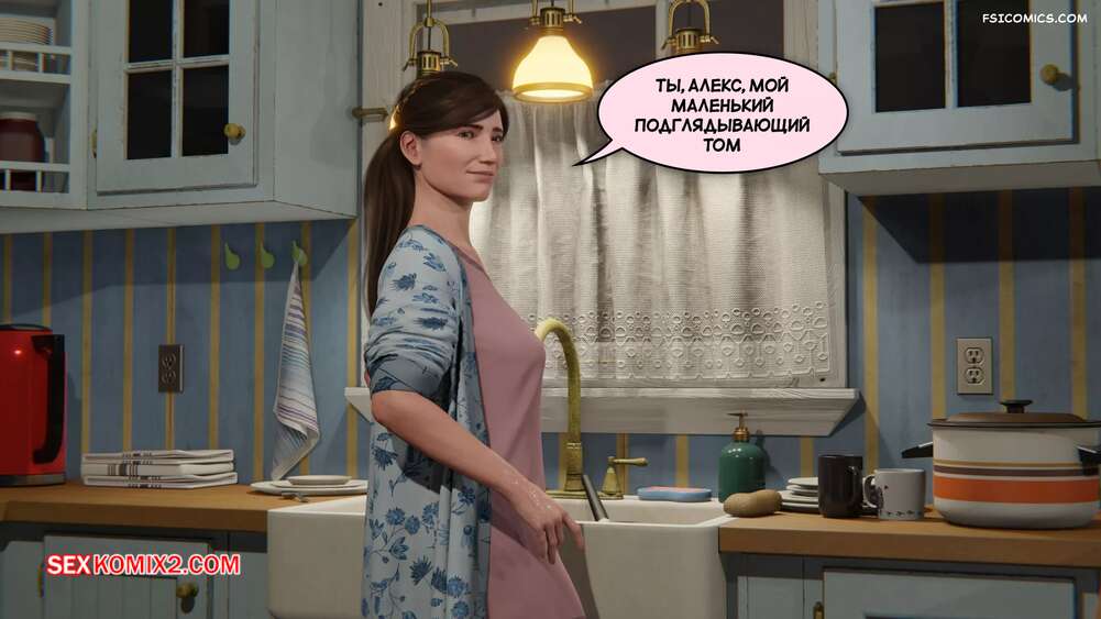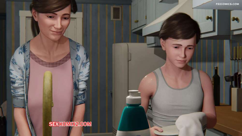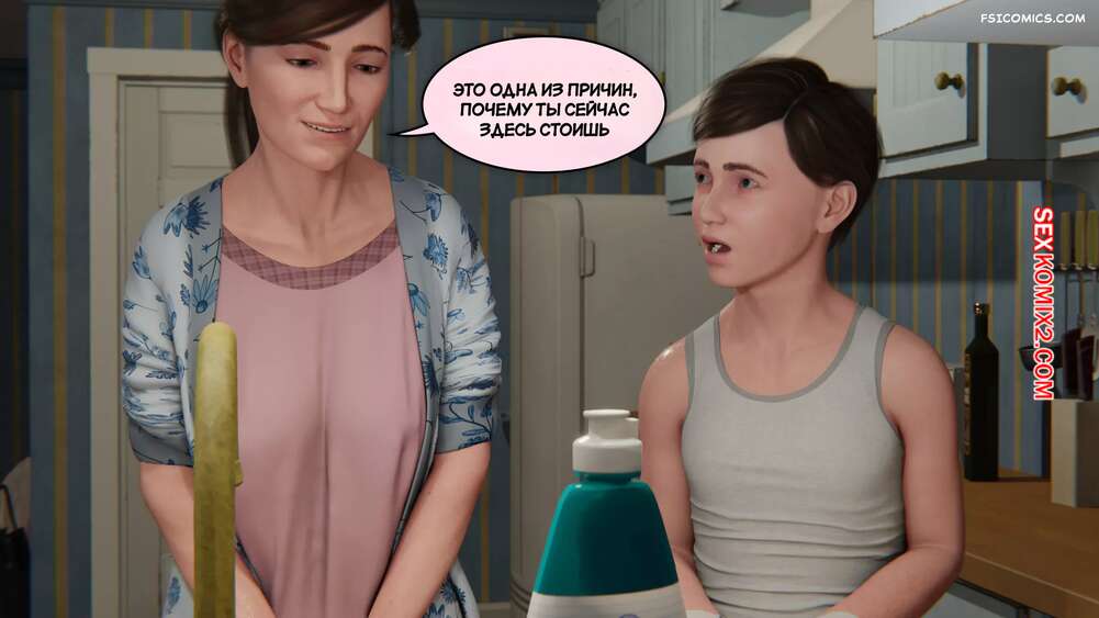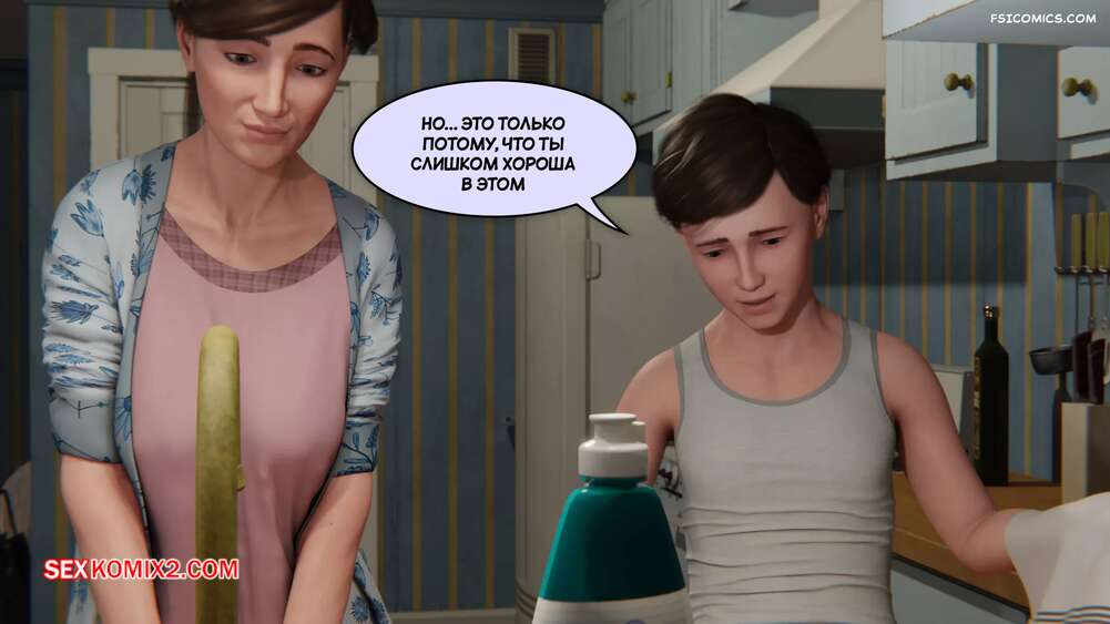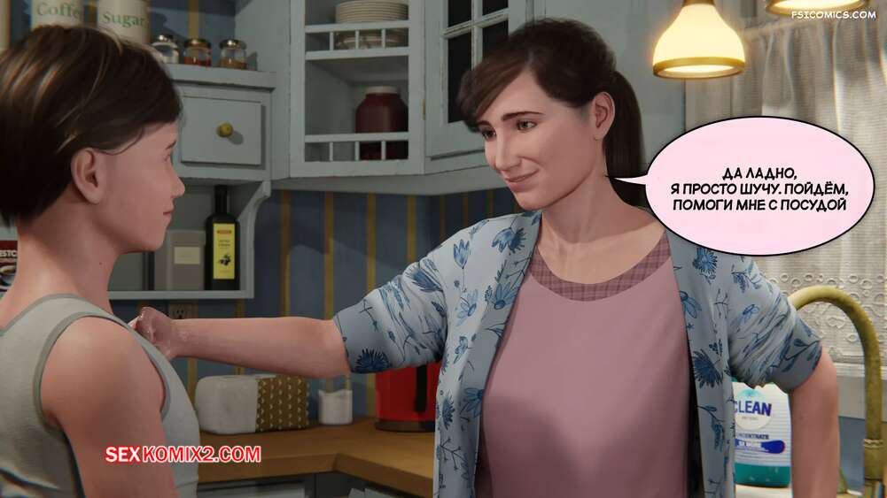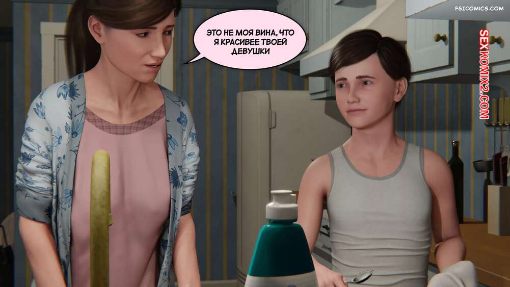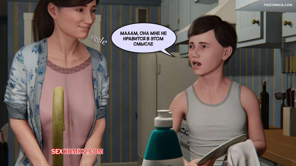 Порно комикс Истории Сантори. Часть 2. Santori Stories. Santo Fabbro Горячая милфа занималась готовкой на кухне и заметила подглядывающего сына. Она села на стул и дала ему полизать свою киску, посел чего сама встала на колени и отсосала член сыночка.
