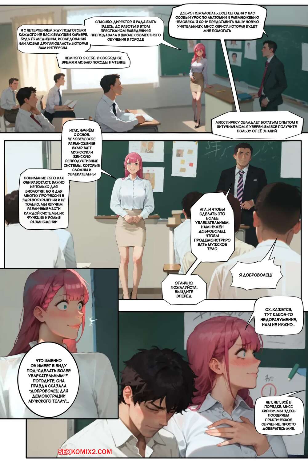 Порно комикс Мы никогда не узнаем Мафью. We never learn Mafyu. Playful Sloth. Рыжая красотка приняла душ и отправилась в школу, надев сексуальный наряд. Вместе со своим коллегой она разделась, чтобы продемонстрировать ученикам мужскую и женскую анатомию.