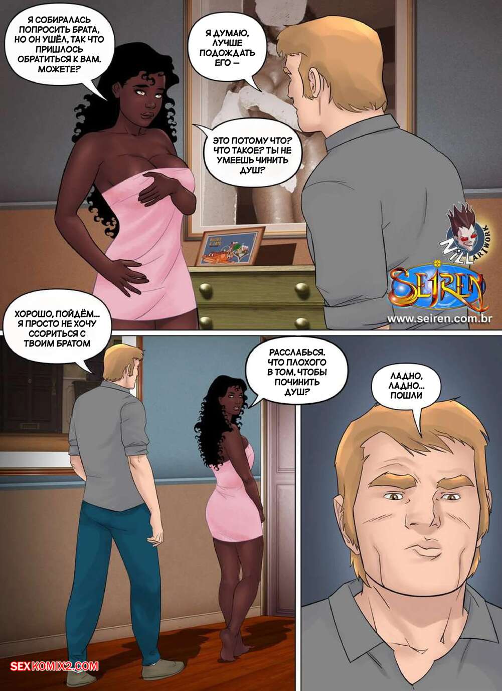 Порно комикс Маленькая принцесса. Часть 1. Little Princess. Seiren. Парень зашел к своему другу, чтобы немного поболтать. Так получилось, что он остался наедине с сестренкой друга, и она попросила его починить душ. Красотка скинула с себя полотенце и стала сосать хуй гостя, позволив ему кончить себе в ротик.