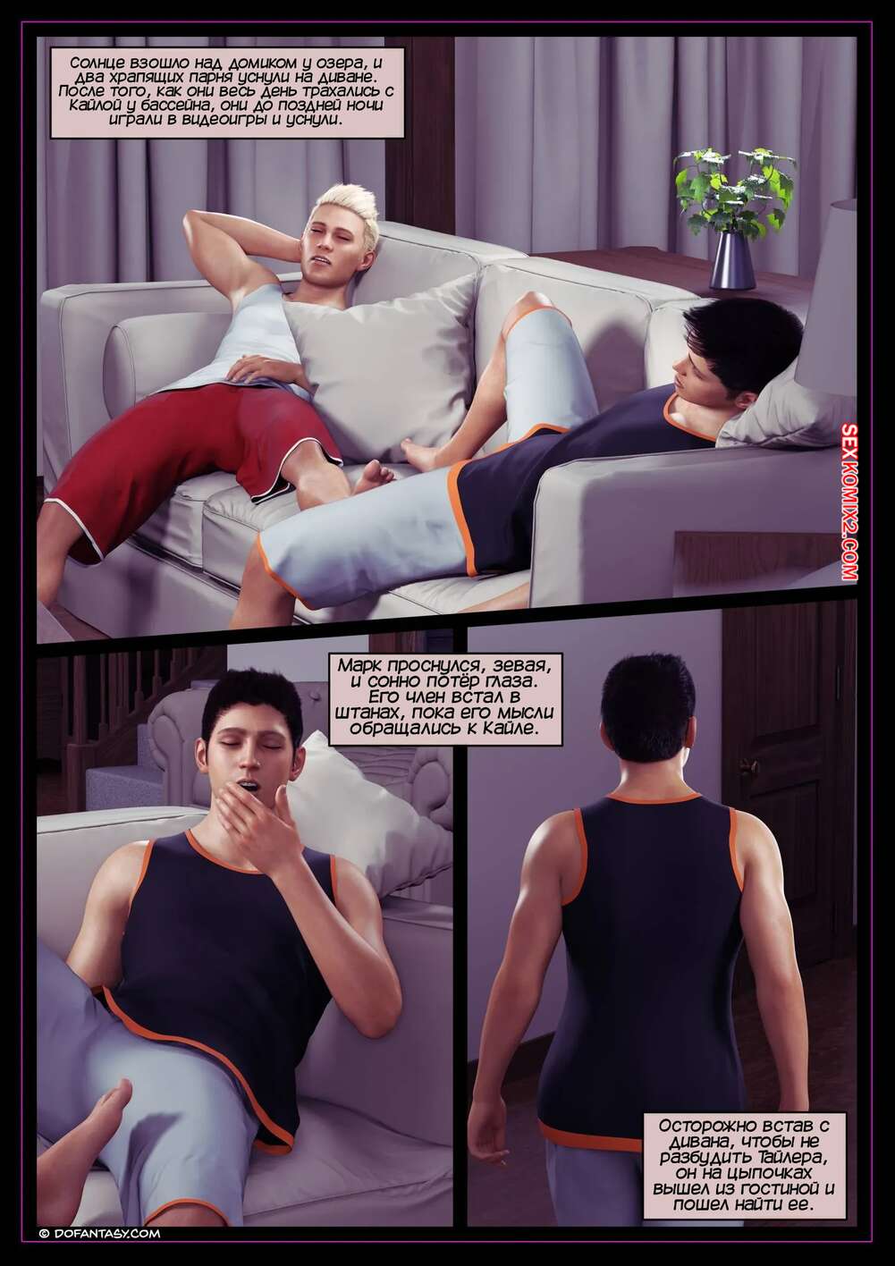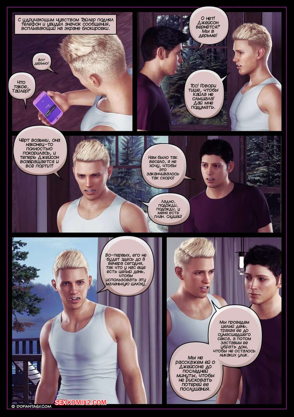 Порно комикс Летние каникулы Кайлы. Часть 5. Kayla Summer Break. Hawke Марк проснулся и, пока Тайлер продолжал спать, отправился в комнату к Кайле. Он разбудил девушку членом во рту, после чего стал ее трахать. Затем он отвел девушку к Тайлеру, чтобы и он насладился ее дырочками с самого утра.