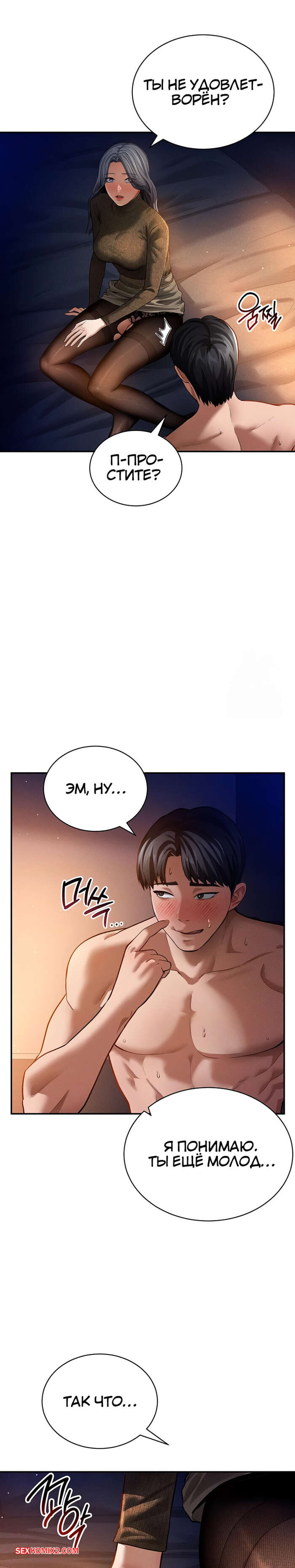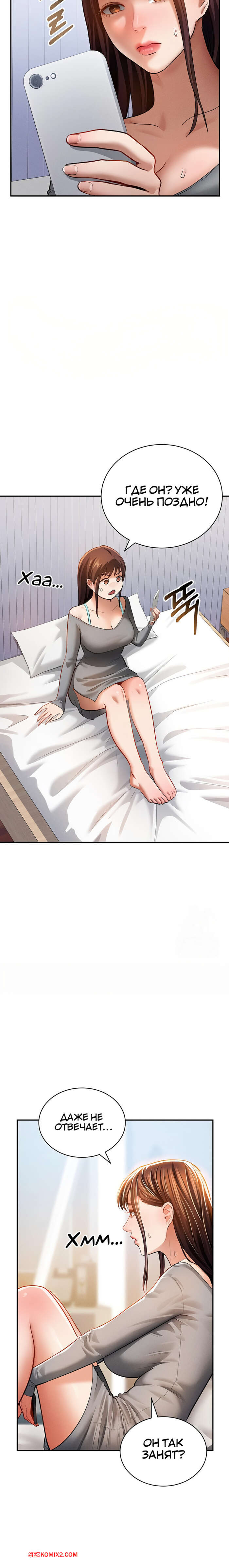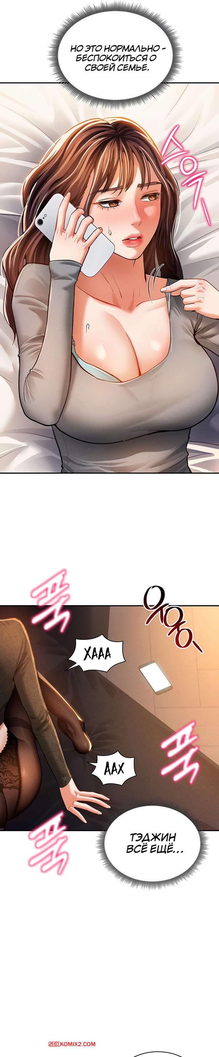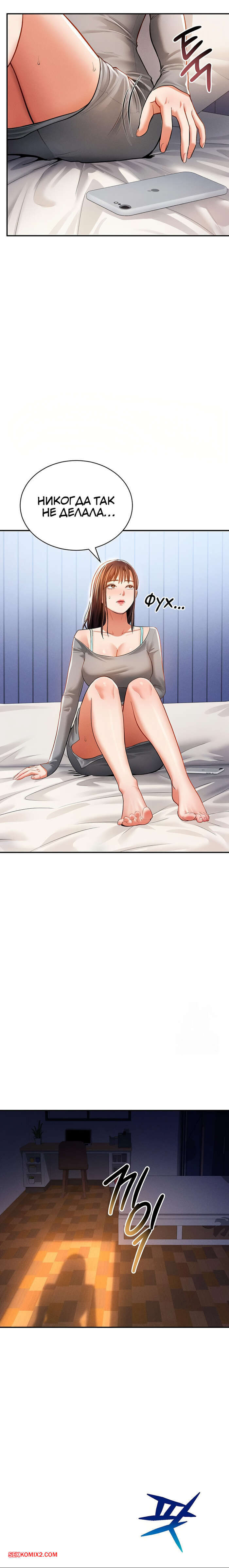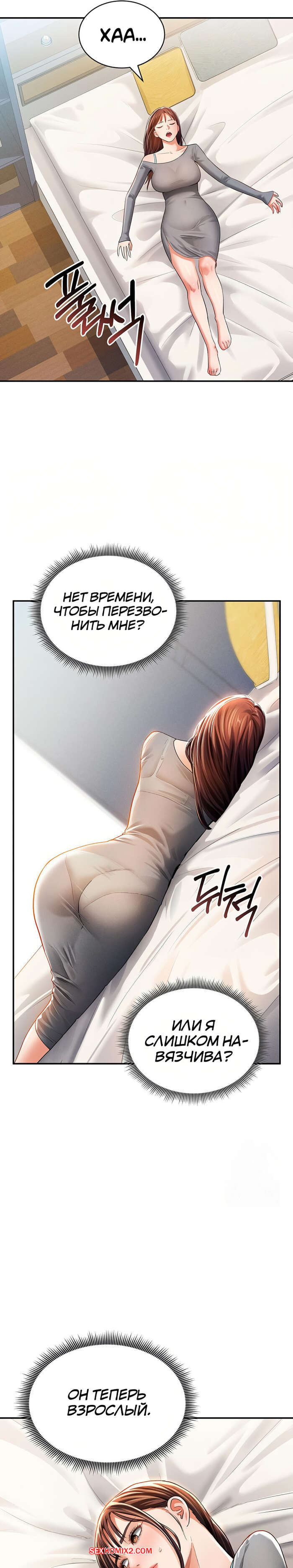 Порно комикс Способность видеть сексуальные желания других людей. Часть 25 и 26 и 27 Парень уложил горячую блондинку на кровать и поспешил раздеться. Он достал свой член и сунул девушке в лицо. Она не смогла сопротивляться и стала сосать хуец парня, после чего раздвинула ножки, чтобы он ее выебал.