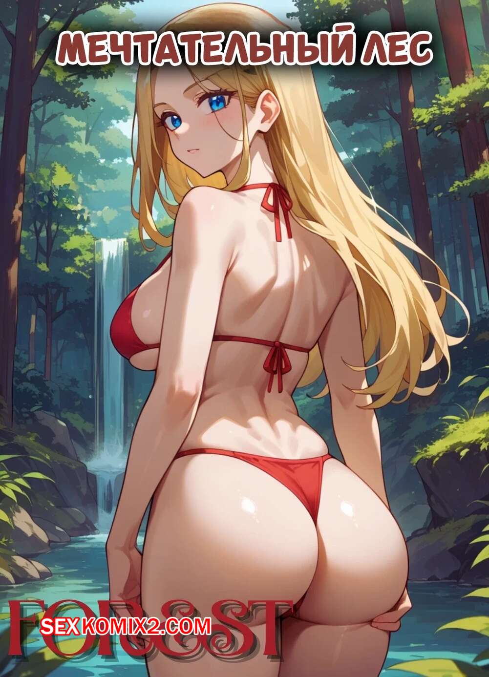 Порно комикс Мечтательный лес. Dreamy Forest. kitsuki world. Горячая блондинка в красном купальнике, уединилась в лесу со своим другом, она разделась перед ним тем самым хорошенько его возбудила. А потом села не го твердый член.