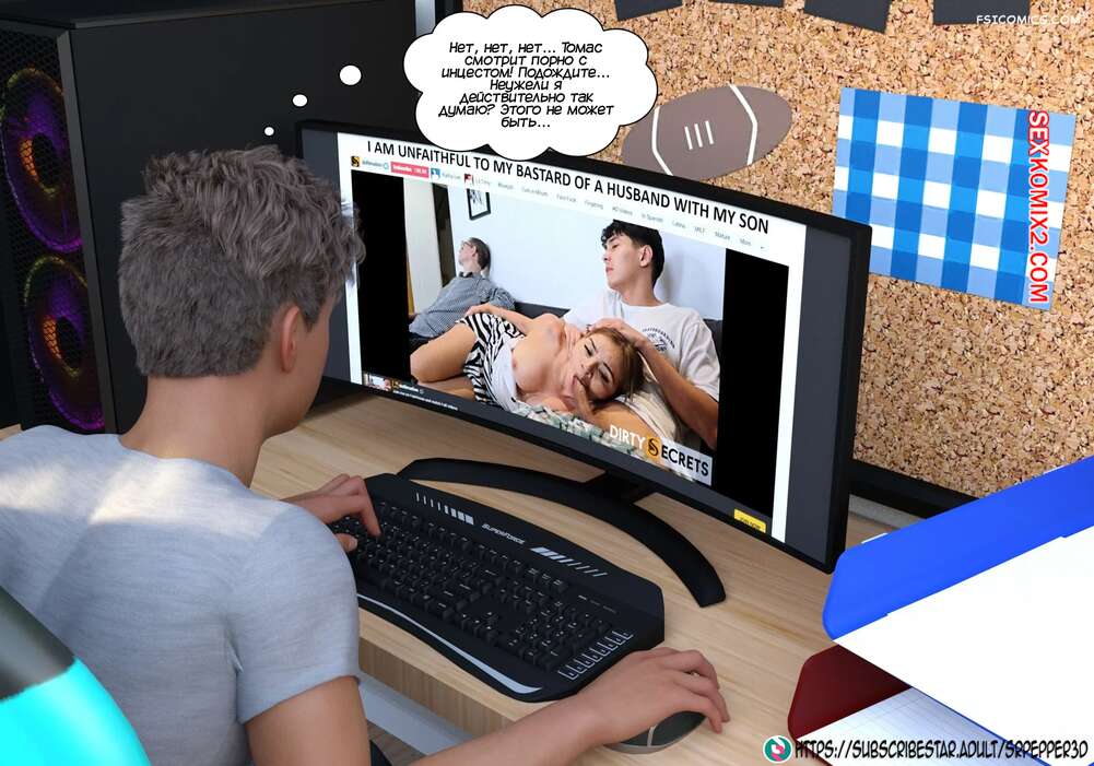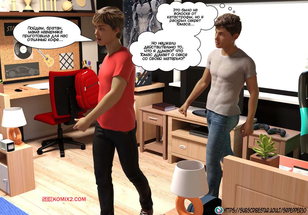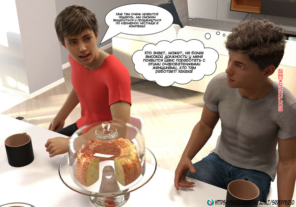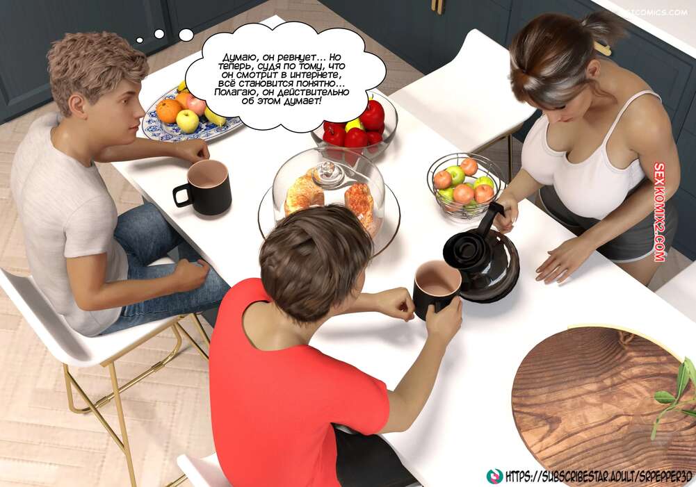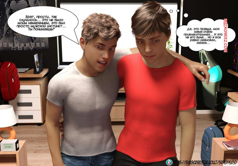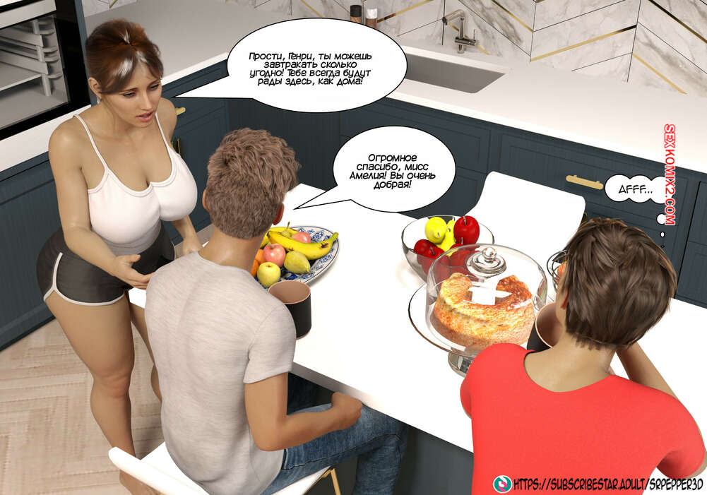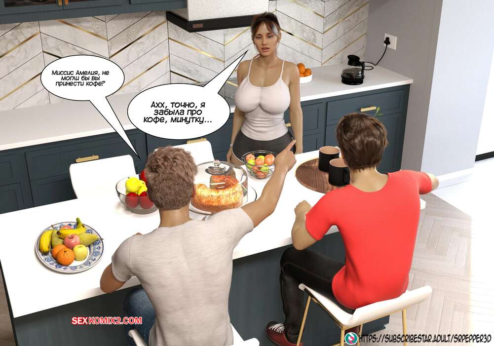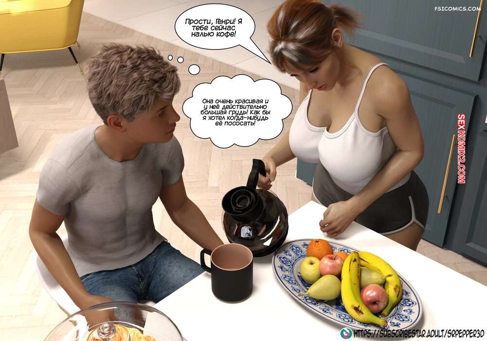 Порно комикс Как я дошла до этого. How did i end up like this. Sr Pepper Горячая милфа проснулась в хорошем настроении и полюбовалась своим сексуальным белье, которое ей подарил муж. Она пошла в ванну, но в коридоре наткнулась на своего сына и его друга.