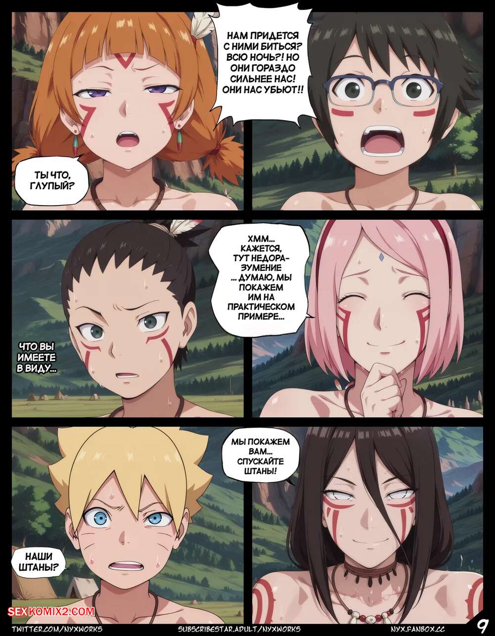 Порно комикс Наруто. Дикие традиции. Wild Traditions. nyxworks. Согласно традициям трем молодым парням предстоит пройти испытания с горячими красотками. Опытные девушки раздеваются и встают на колени перед парнями, после чего ублажают их члены ротиками и дают трахнуть свои дырочки.