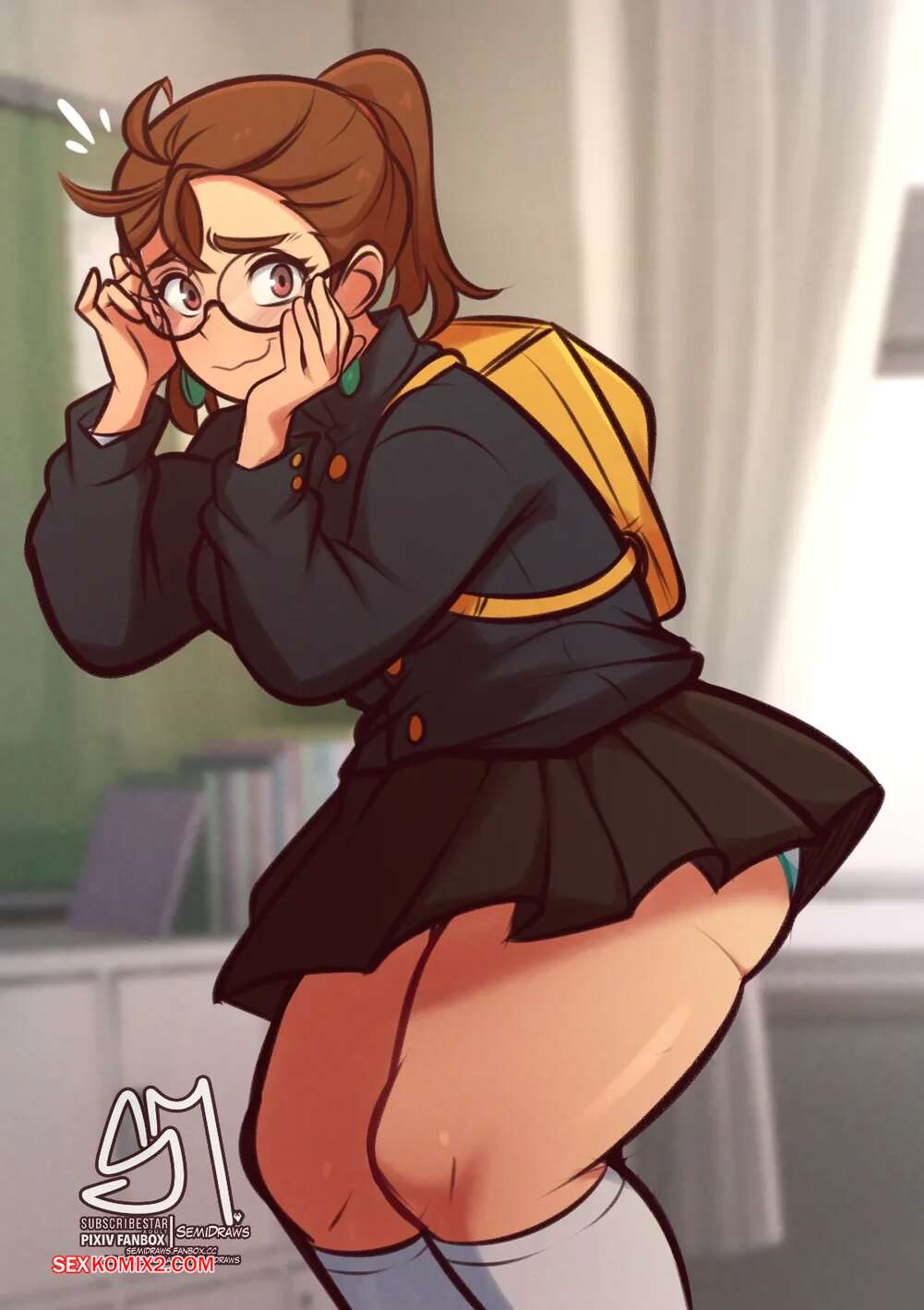 Порно комикс DanDaDan. Дандадан. semidraws. Горячая блондинка милфа решила развратить брюнеточку. Она ласкает ее попку и предлагает носить более откровенную одежду, после чего они на пару отсасывают хуец парня.