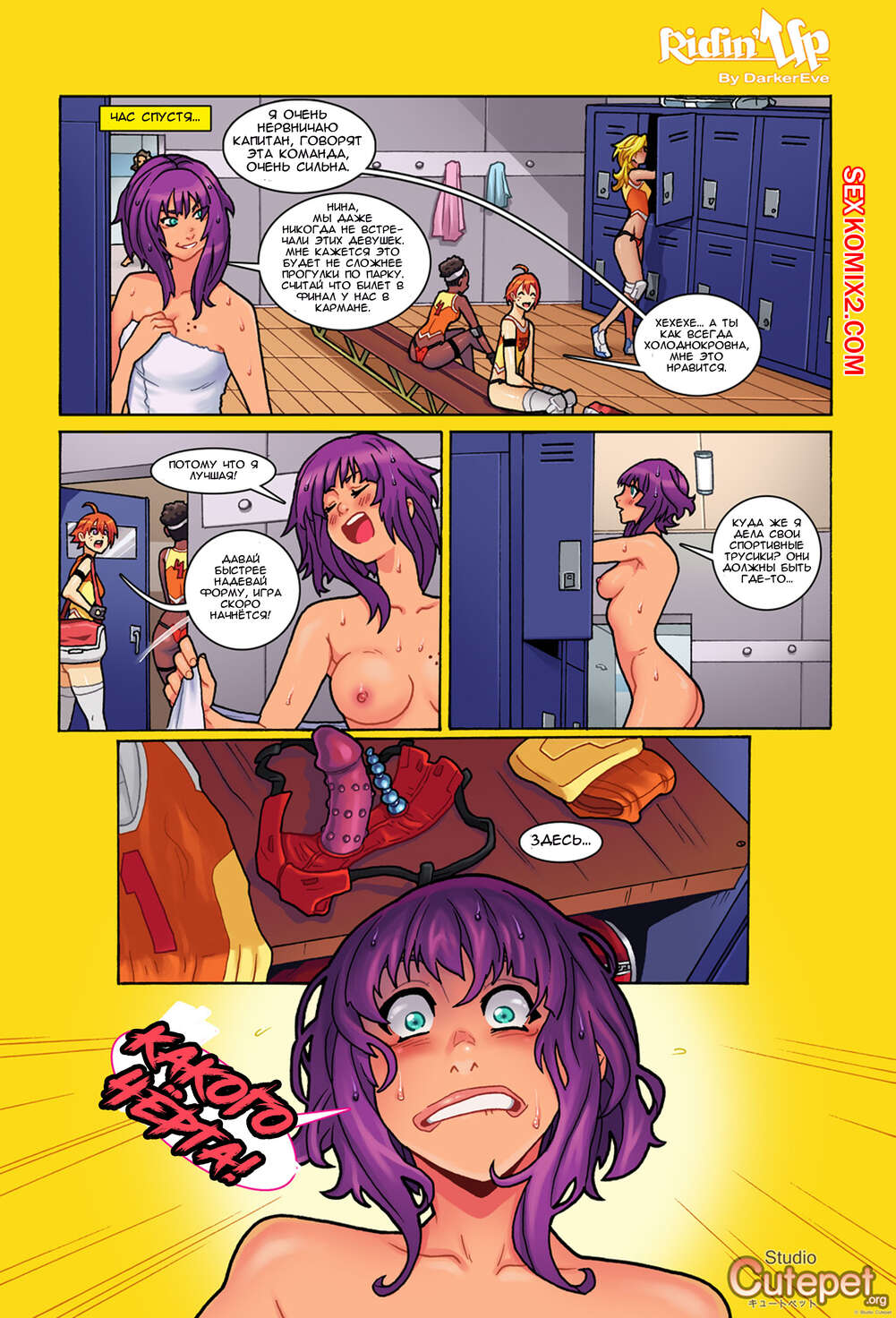 Порно комикс Гендер. The Ridin Up. Часть 5. Промежуточный этап Перед важной волейбольной игрой красотка очень сильно волновалась, поэтому решила надеть специальные шортики с дилдаком, который оказался прямо в ее узкой попке. Это мешело ей играть и игра шла плохо. Но в перерыве подруга отлизала пизденку красотки и хорошенько отъебала дилдо, что наша героиня смогла затащить игру.