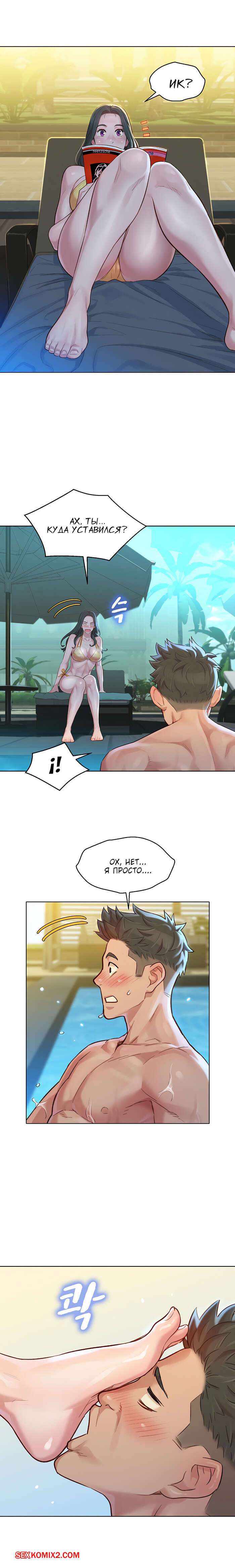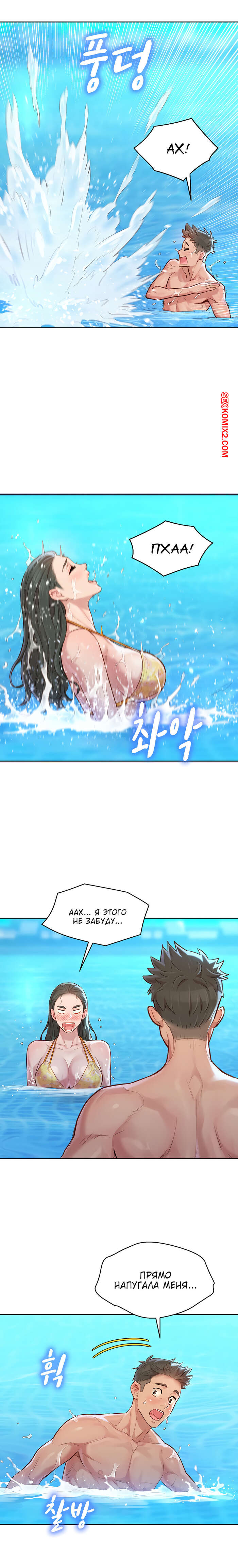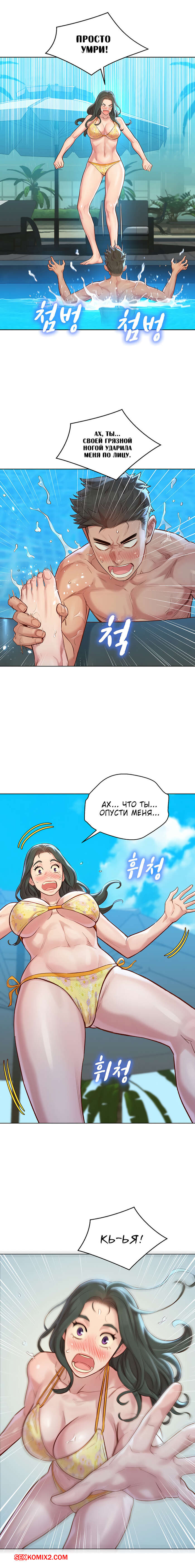 Порно комикс Сестра по соседству. Часть 127. Sister Neighbors. Отдых наших героев продолжается. Парень отлично проводит время с тремя девушками, они веселятся и купаются в бассейне. Но трое парней по соседству, очень хотят этих красоток. Они считают не справедливым распределение девушек.