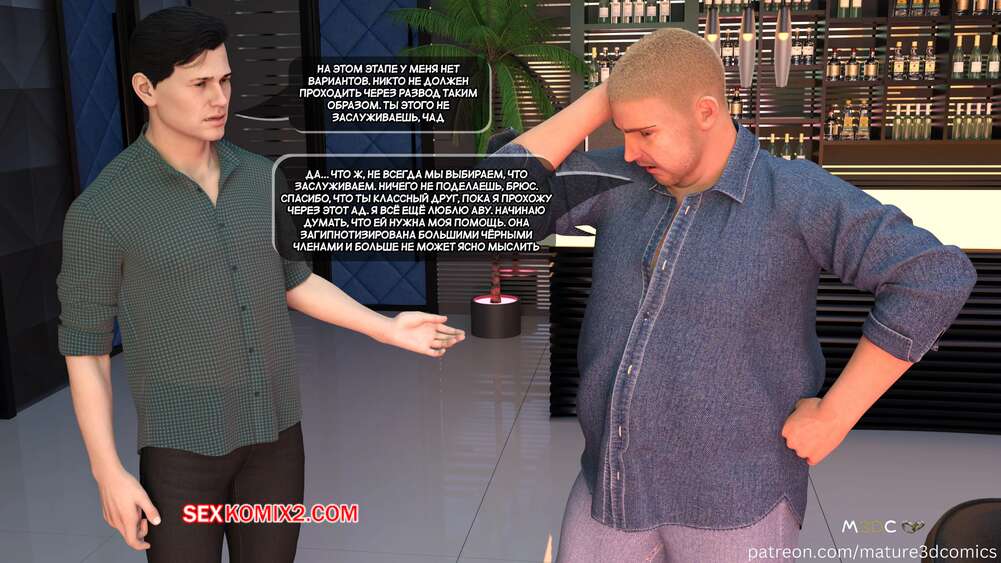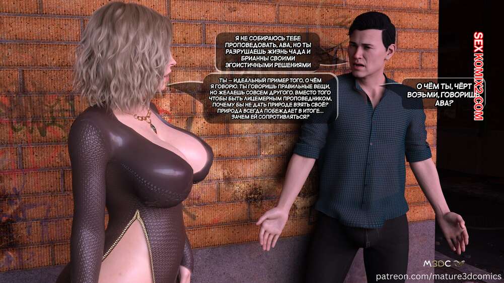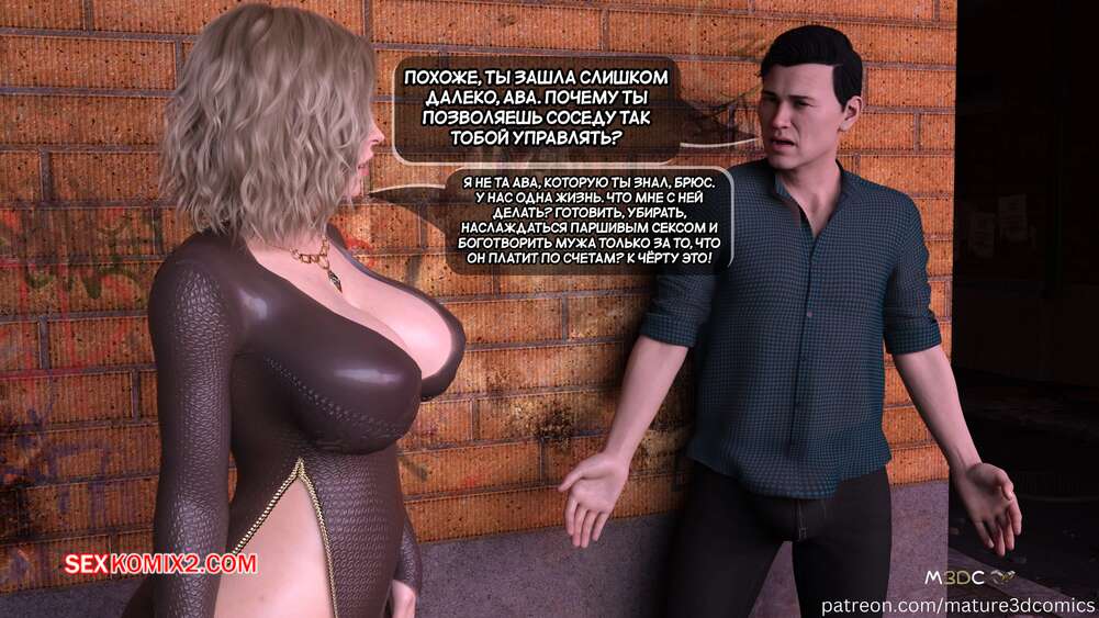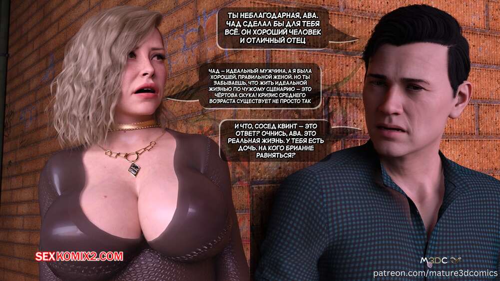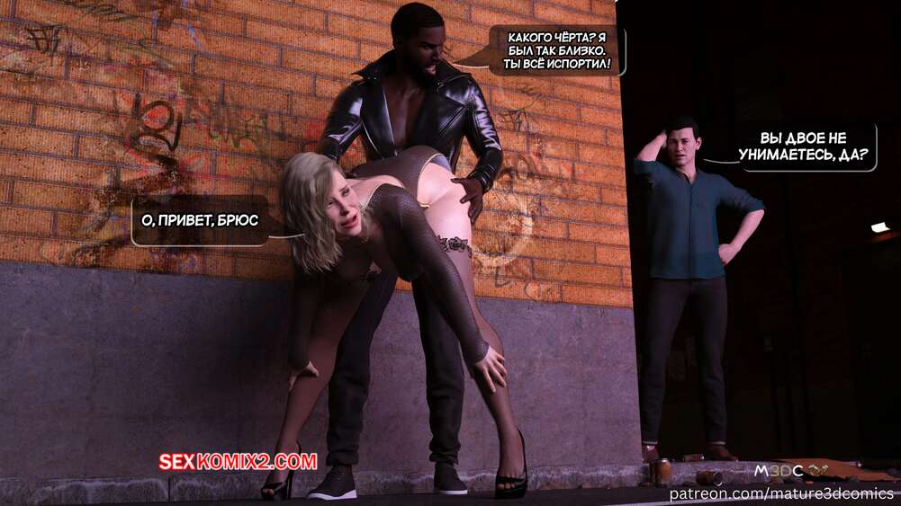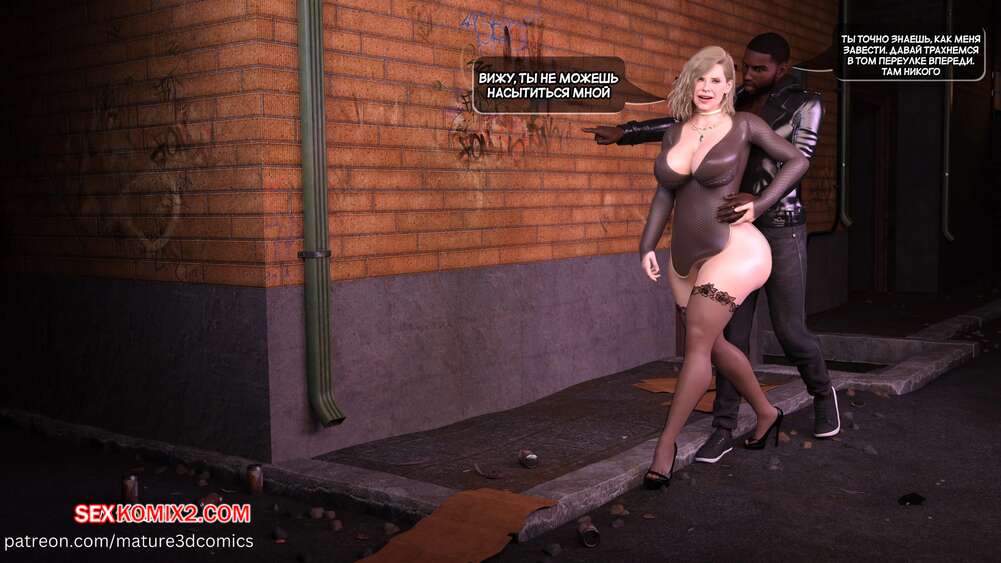 Порно комикс Грязный сосед. Часть 18. Naughty Neighbor. Mature3DComics Чад поговорил со своим другом и он отправился поговорить с Авой. Темнокожий парень привел ее в переулок и стал трахать пизденку милфы, а друг Чада наблюдал за этим со стояком.