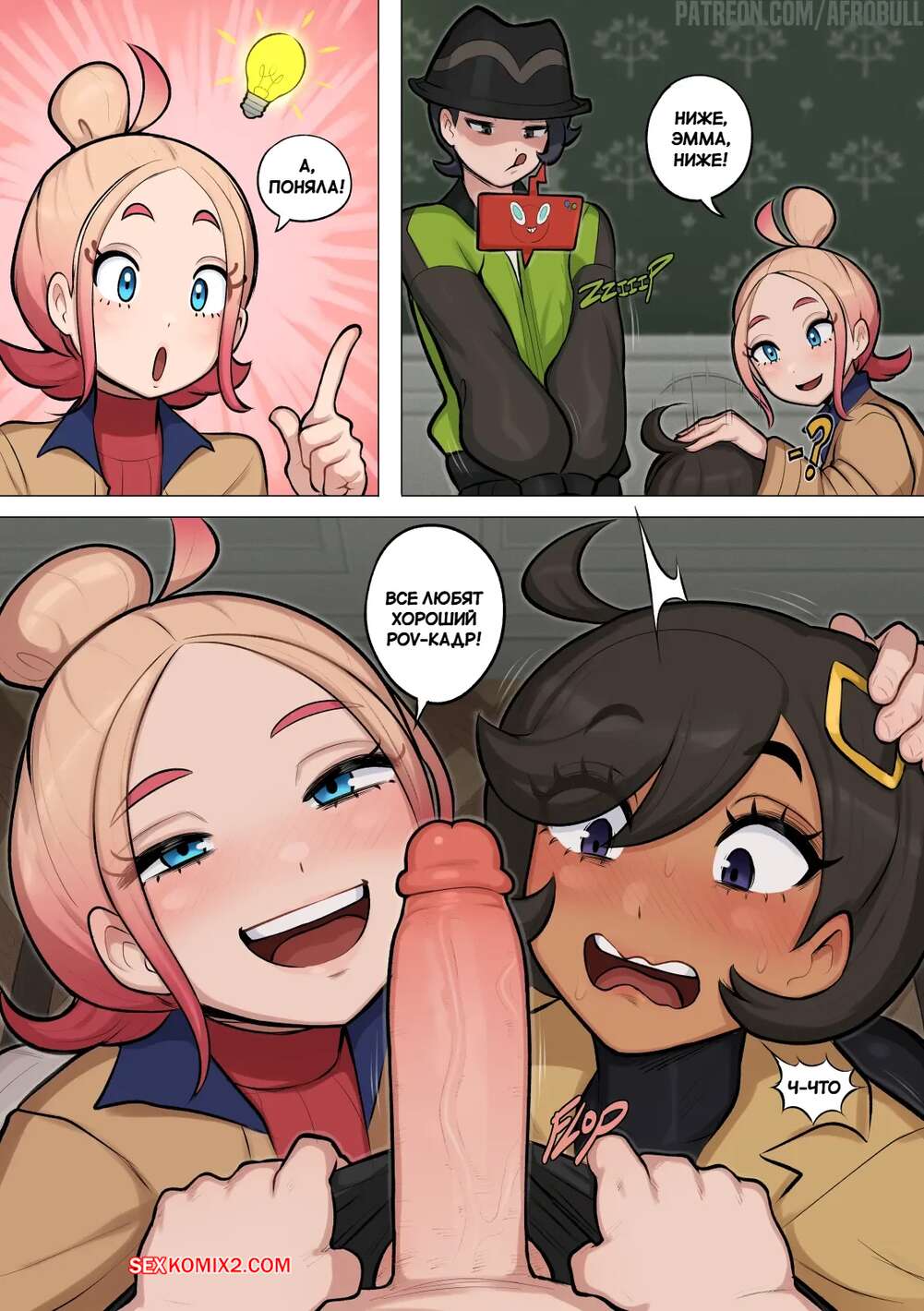 Порно комикс Эмма. Emma. Afrobull. Две горячие красотки возбуждены и решают повеселиться со своим дружком. Они встали на колени и отсосали стояк парня, после чего раздвинули ножки и дали себя выебать.