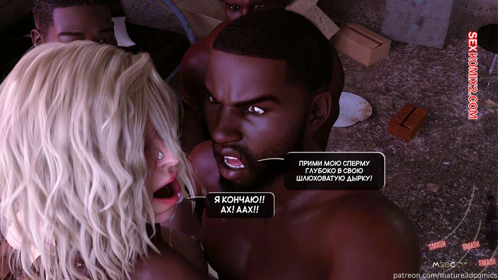 Порно комикс Грязный сосед. Часть 21. Naughty Neighbor. Mature3DComics Ава оказалась в толпе темнокожих парней, которым не терпится насладиться ее телом. Они дают девушке отсосать свои члены, после чего хорошенько трахают ее в пизду и задницу.