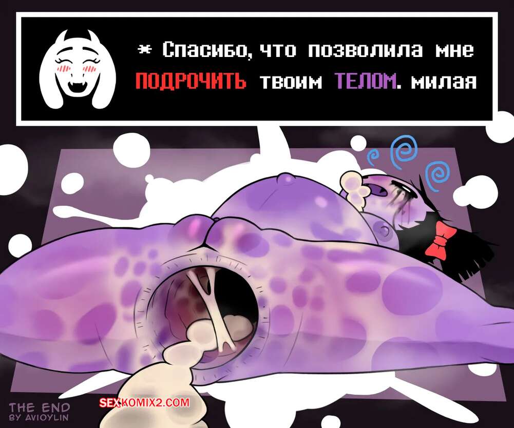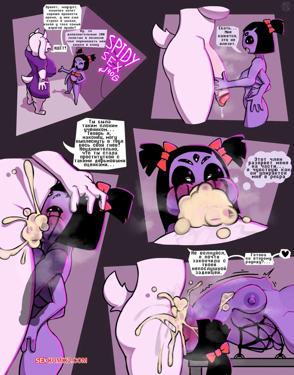 Порно комикс Undertale. Muffet Sex. Avioylin Блондинка с огромным членом возбуждена и решает расслабиться со своей подругой брюнеткой. Она уложила ее на стол и вставила ей в ротик свой хуй, после чего заполнила литрами своей спермы.