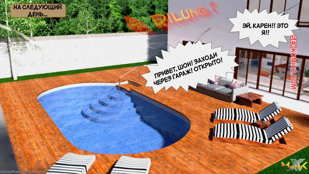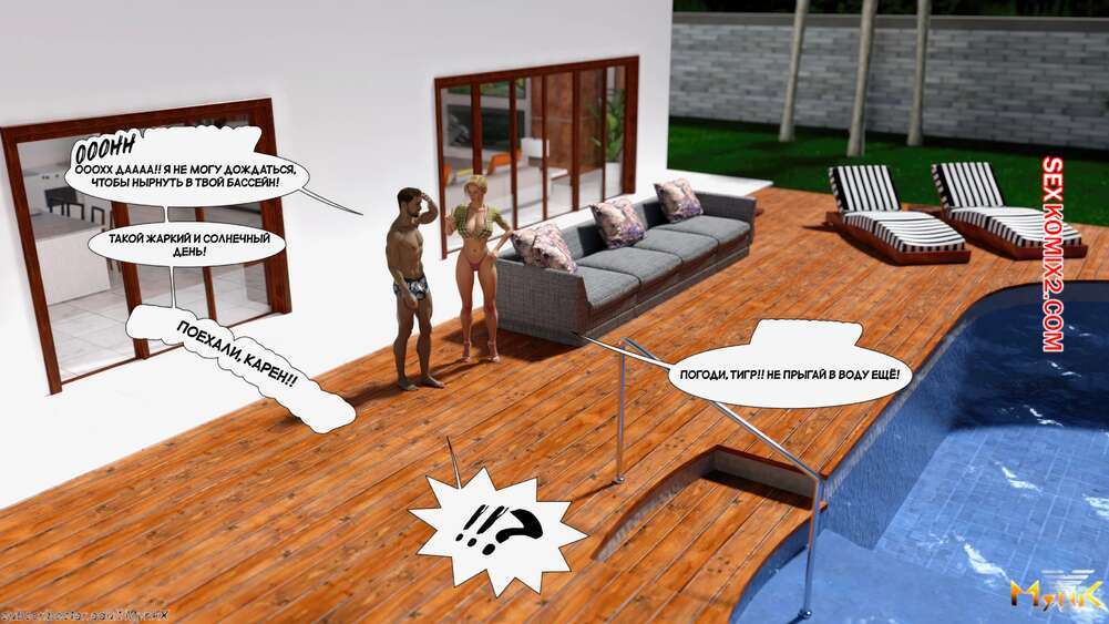 Порно комикс Один летний день. One Summer Afternoon.Mynkx. Парень с девушкой отдыхали у бассейна и между ними возникла страсть. Парень стал ласкать красотку и возбуждать ее, после чего вставил в нее свой член и хорошенько ее трахнул.