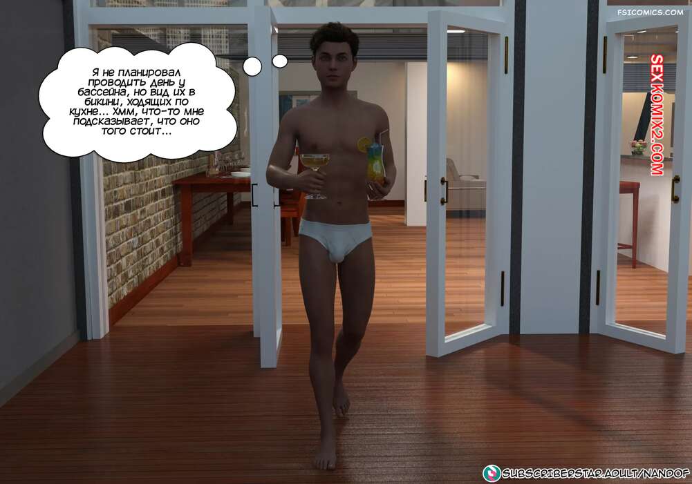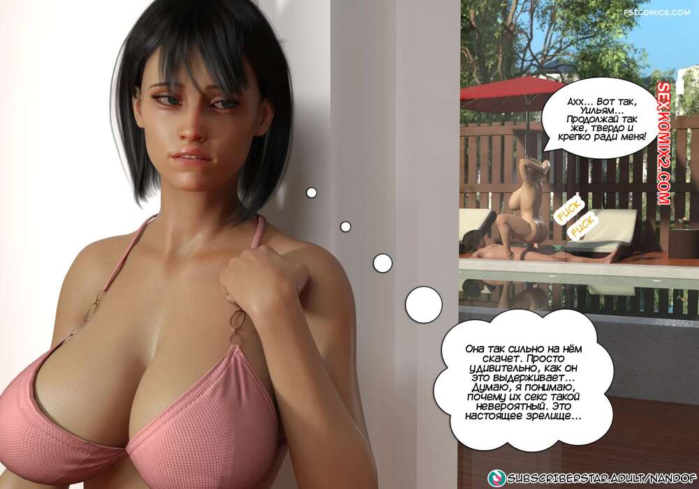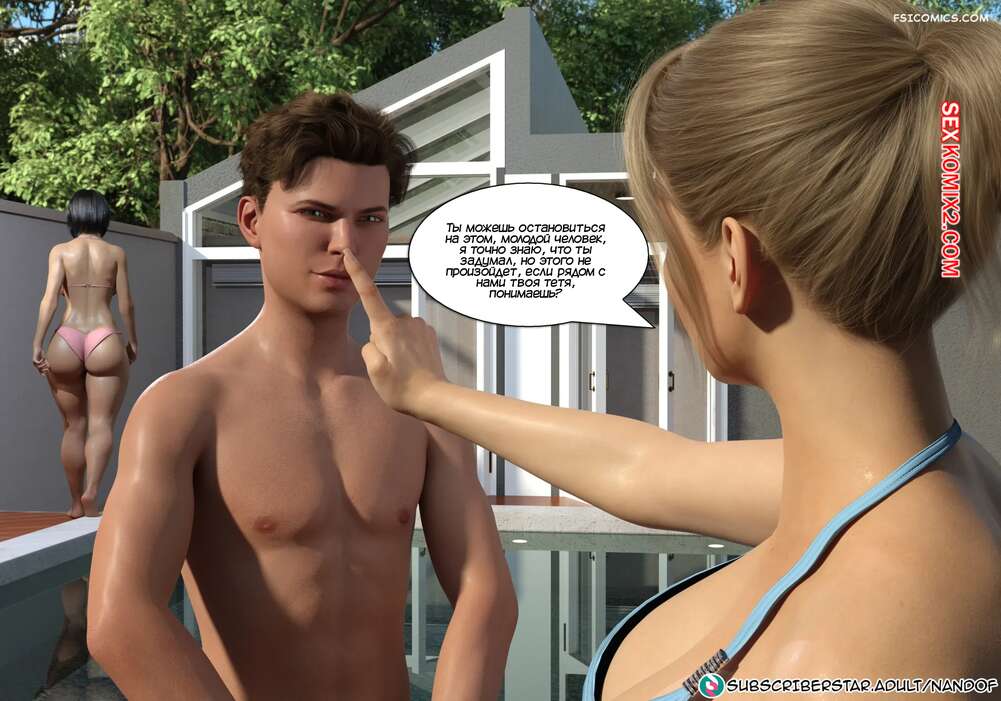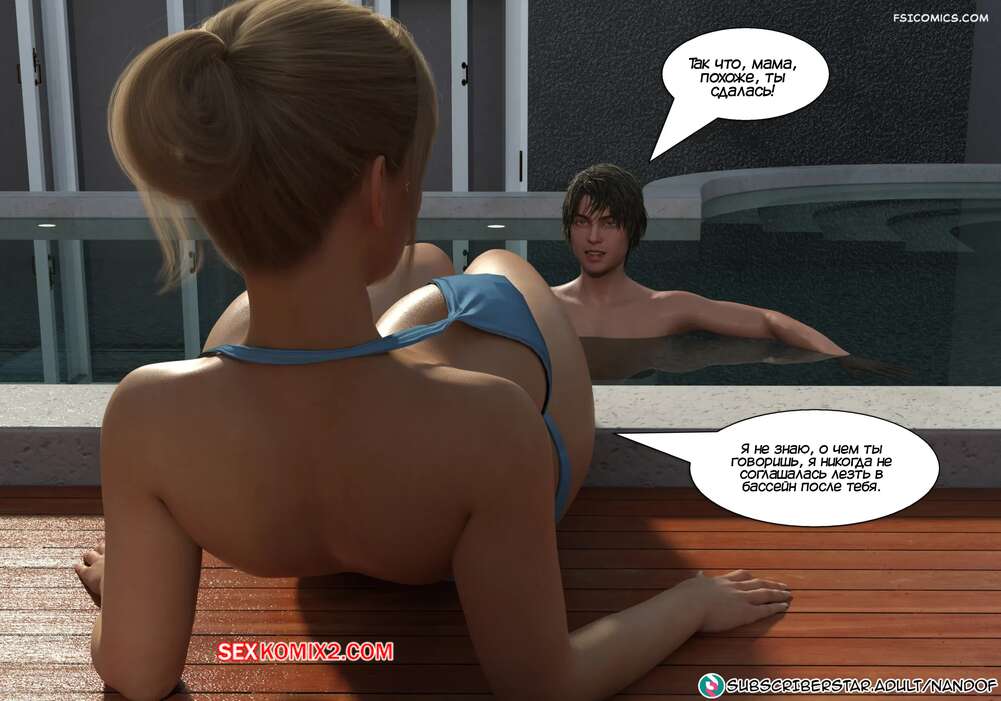 Порно комикс Запретное соблазнение. Часть 5. Forbidden Seduction. NandoF Софи решила расслабиться у бассейна и позвала Бренду с собой. Брюнеточка поговорила с Уильямом и решила оставить племянника и сестру наедине. Парень соблазнил свою мамочку и склонил ее заняться сексом.