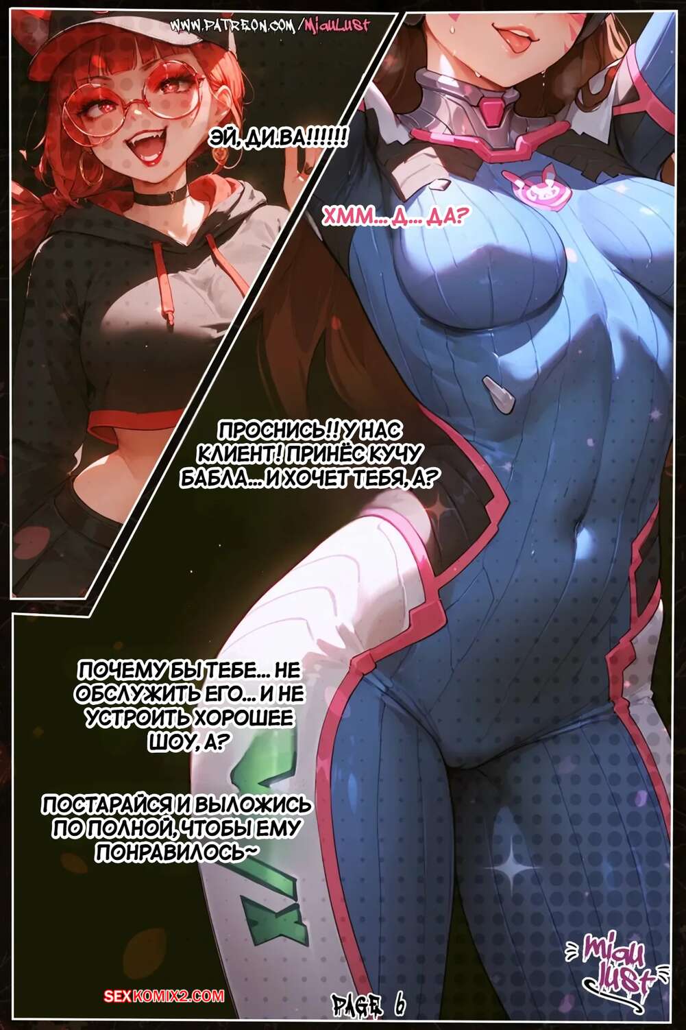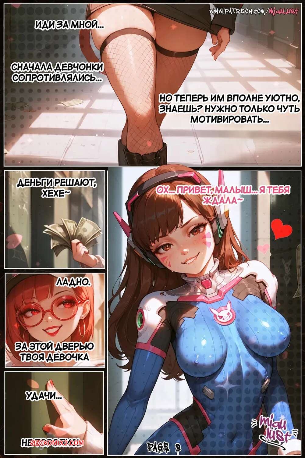 Порно комикс Overwatch. Овершлюхи. D.va From In OVERSLUTS. MiauLust. Парень предлагает хорошие деньги горячей брюнетке и она не может от такого отказаться. Красотка трется о парня своей аппетитной попкой, после чего дает ему себя выебать.