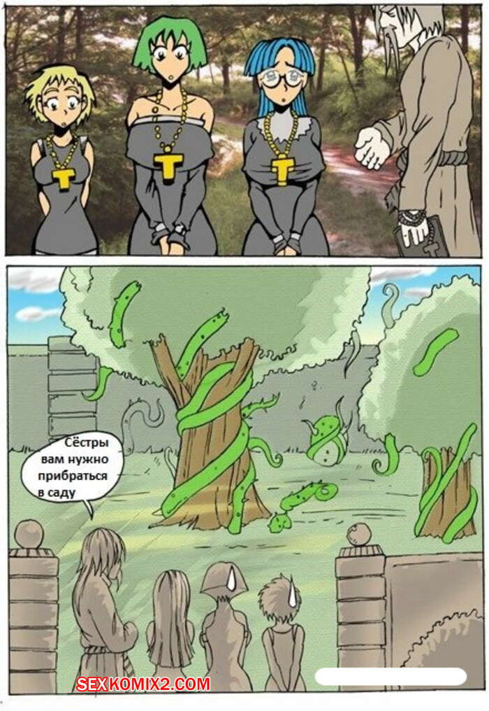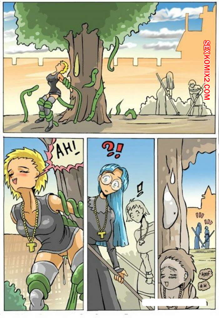 Порно комикс Монашки и дерево. Akabur Двух монашек отправили в сад убраться и там на них напали растения при помощи своих щупалец. Они их связали и стали мощно трахать во все дырки при помощи своих конечностей, доставляя сучкам огромное удовольствие.