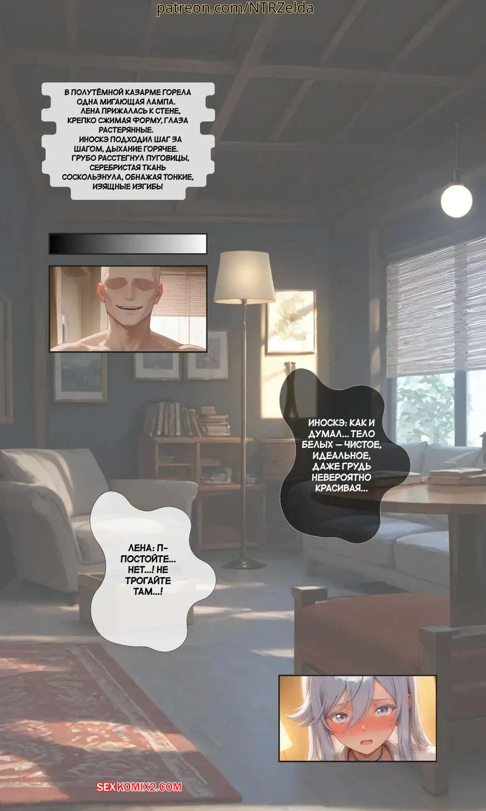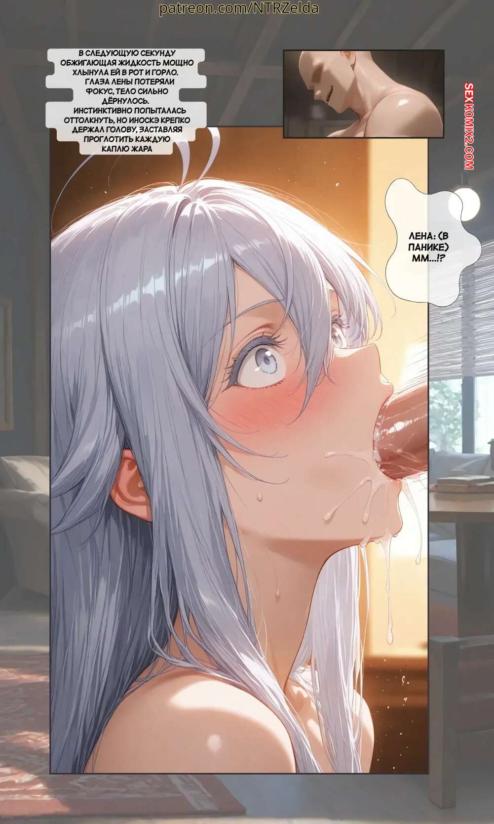 Порно комикс За закатом. Лена. Beyond The Sunset. Lena. NTRzelda. Парень пригласил горячую блондинку к себе домой, желая повеселиться. Он стал ласкать большие сиськи девушки и возбудил ее, после чего дал ей отсостаь свой твердый хуй.