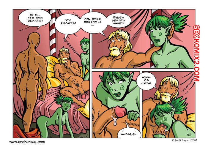Порно комикс Энчантия. Jordi Bayarri. Enchantae. Части с 21 по 30 Красотки с зеленой кожей решили хорошенько поебаться и позвали к себе обычную девушку и парня. Они стали страстно трахаться, а затем обычная красотка надела на себя страпон и принялась ебать зеленокожую дамочку, пока ее саму сзади ебал парень.